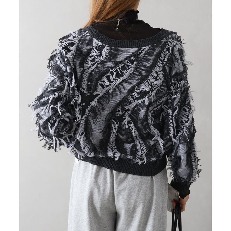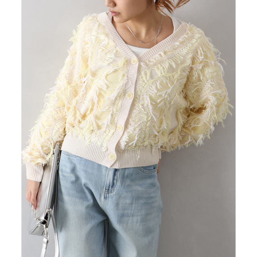 柔らかなニットベースに、動きのあるフリンジを重ねることで、シンプルながらも表情豊かな一枚に仕上げました。