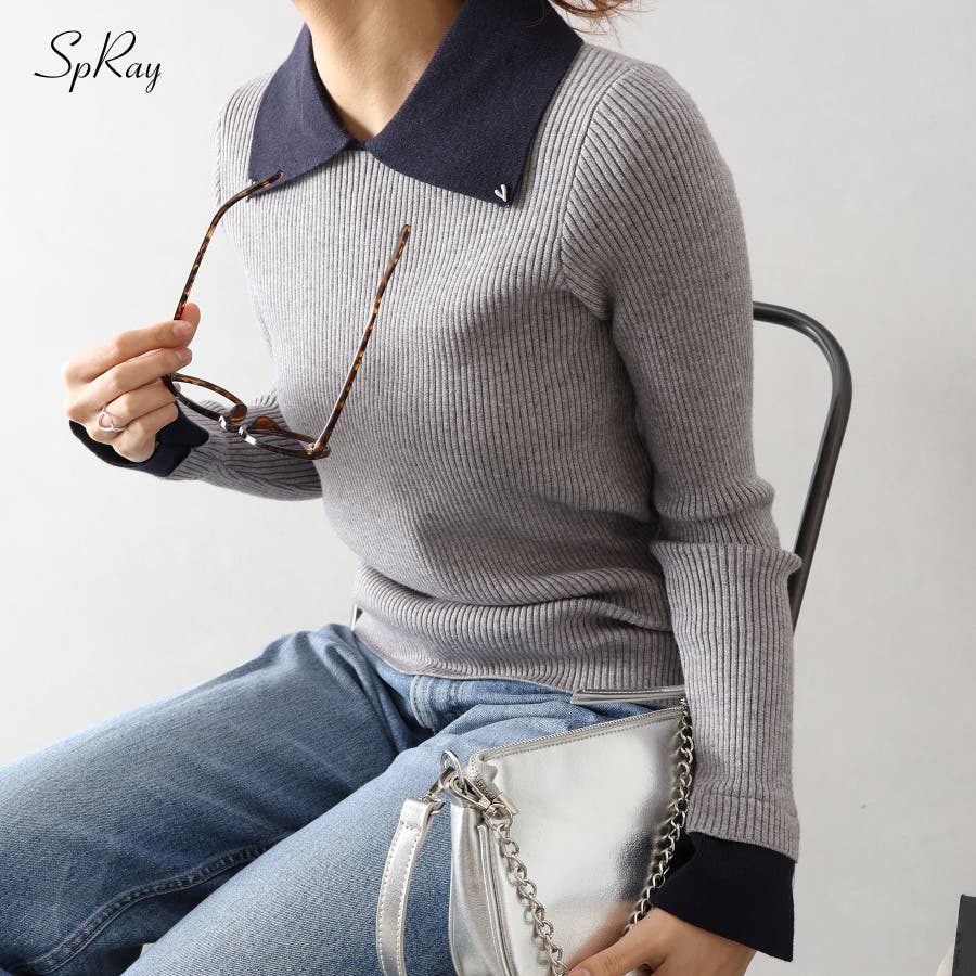 【SpRay 襟付きニットプルオーバー】