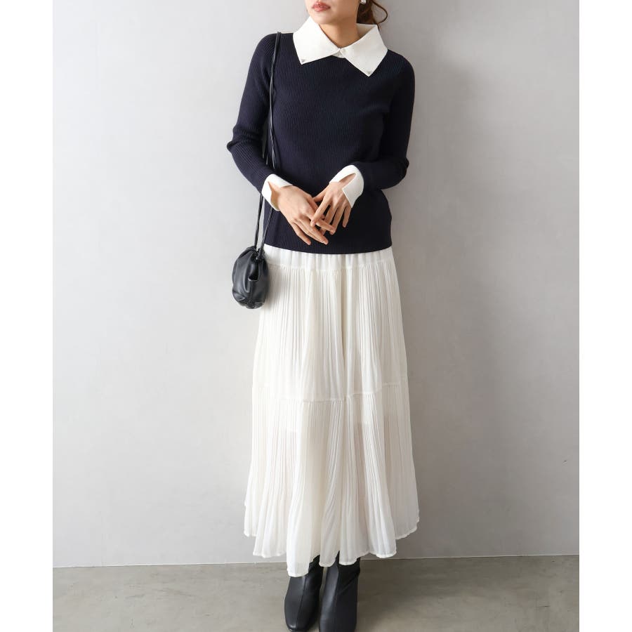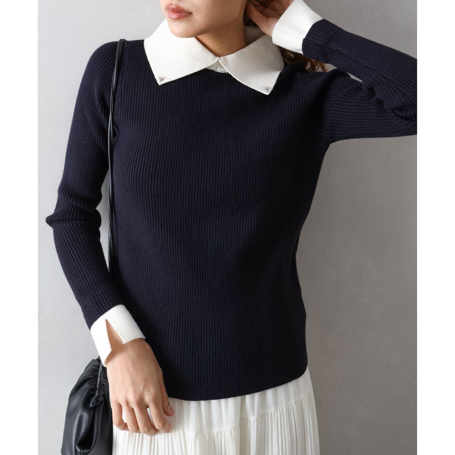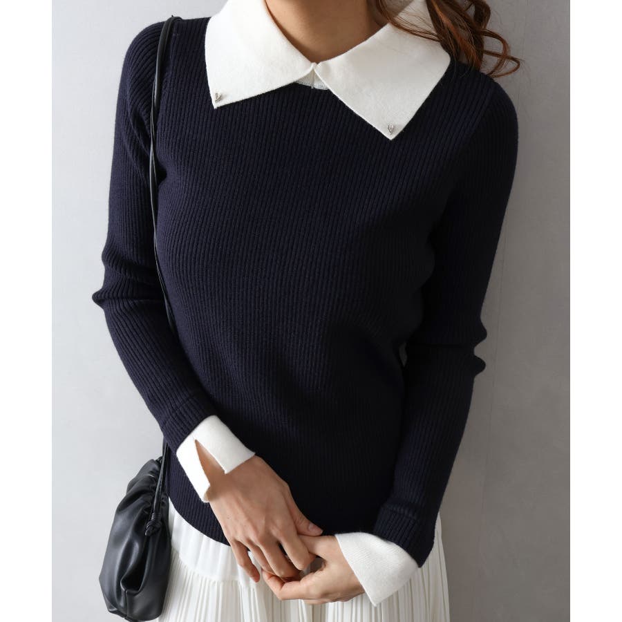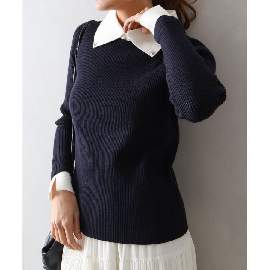 クラシカルで上品な印象の襟付きニットプルオーバーです。