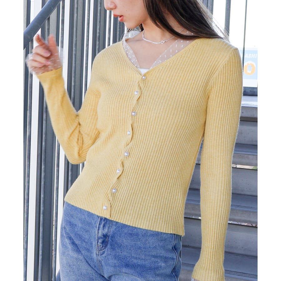 フロントは上品なパール調ボタン仕様で、きれいめにもカジュアルにも相性◎