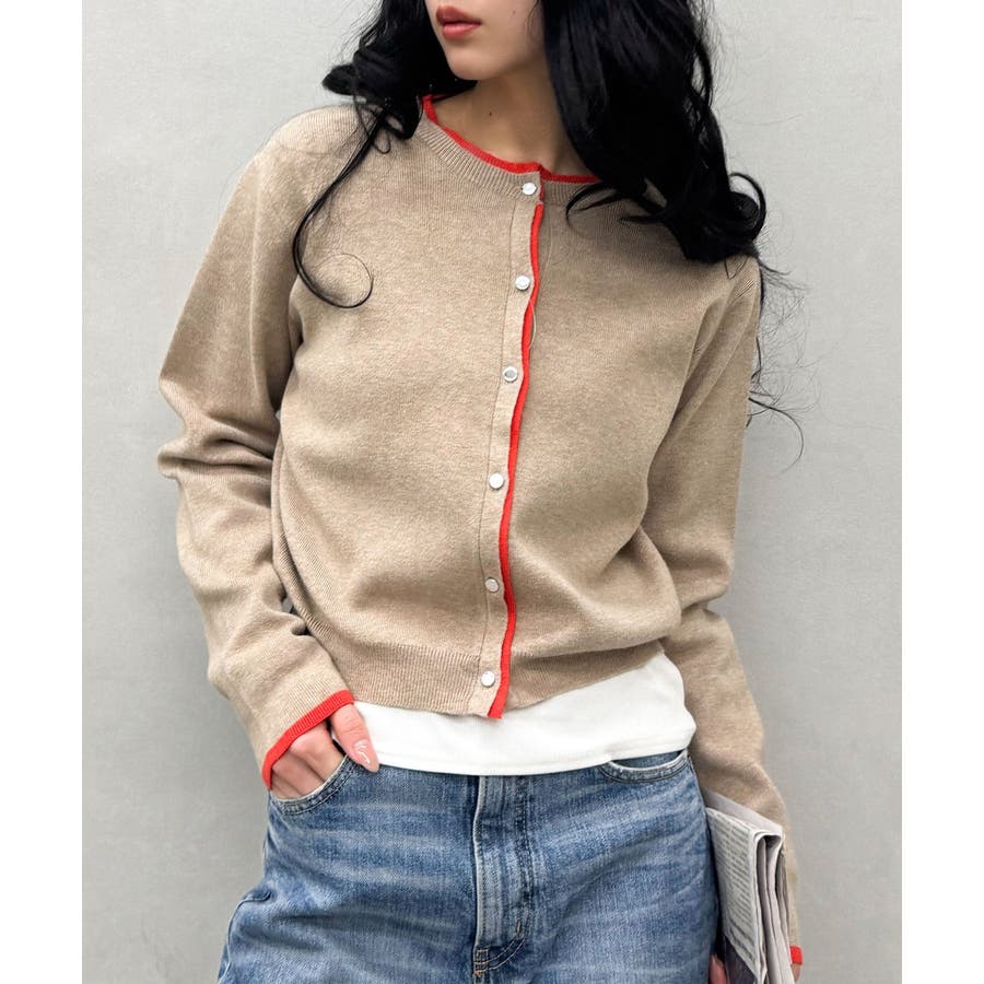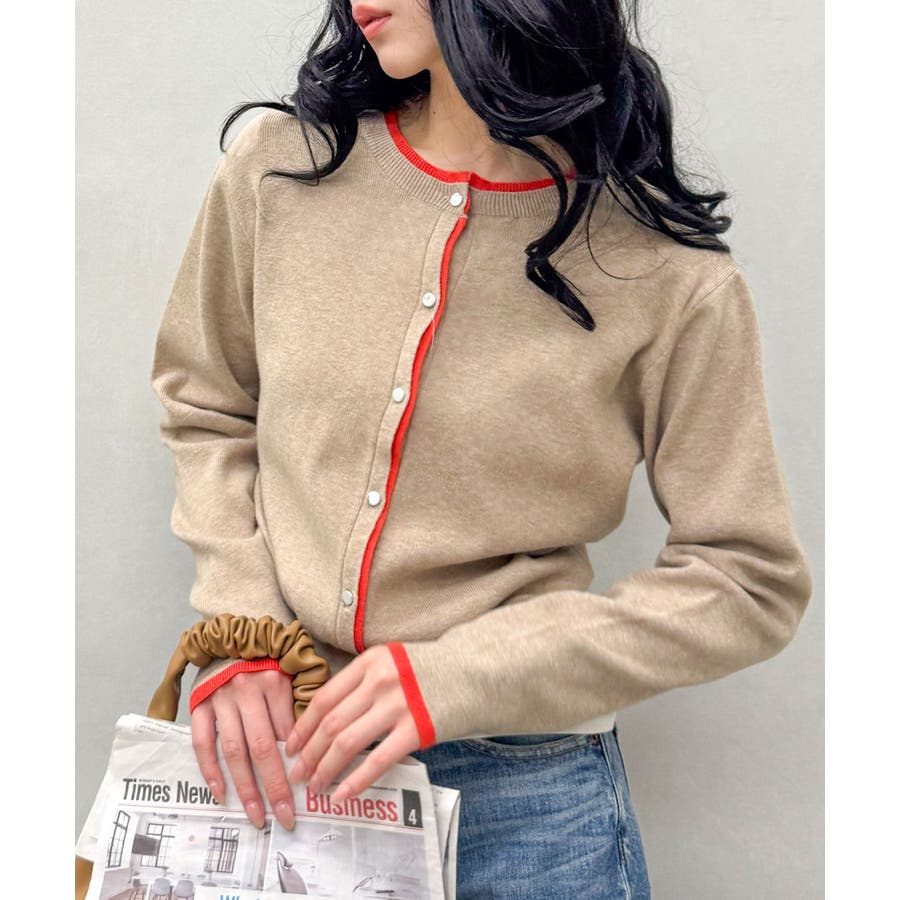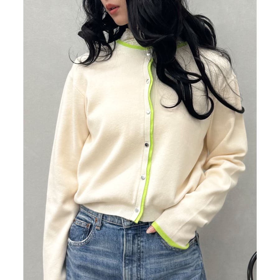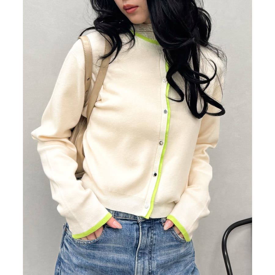 一気に垢抜け。視線を奪う「主役級」配色カーディガン!ベーシックなカーディガンに、エッジの効いた配色ラインをプラス。袖を通すだけでパッと顔まわりを明るく見せ、こなれ感を演出してくれる一枚です。計算されたコンパクトな丈感は、ハイウエストのボトムスやワンピースとも相性抜群。ボタンを閉じてプルオーバー風に着こなすのもおすすめです。