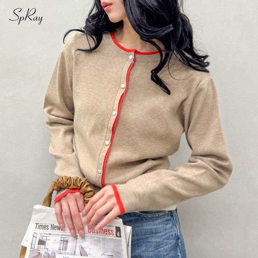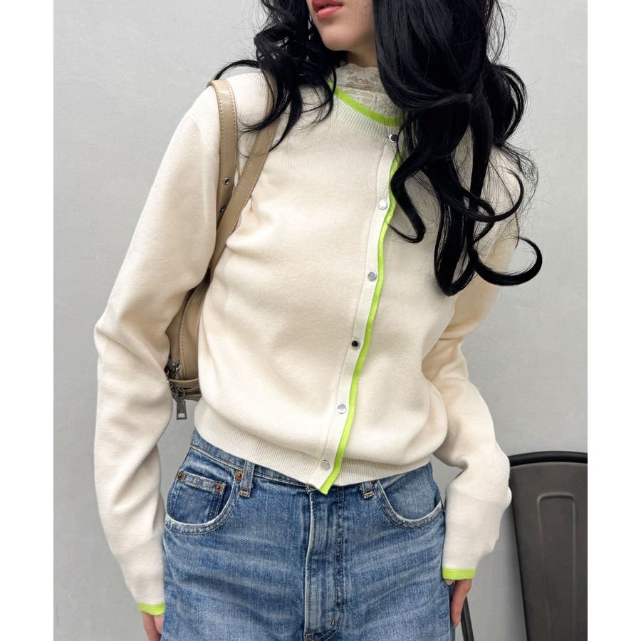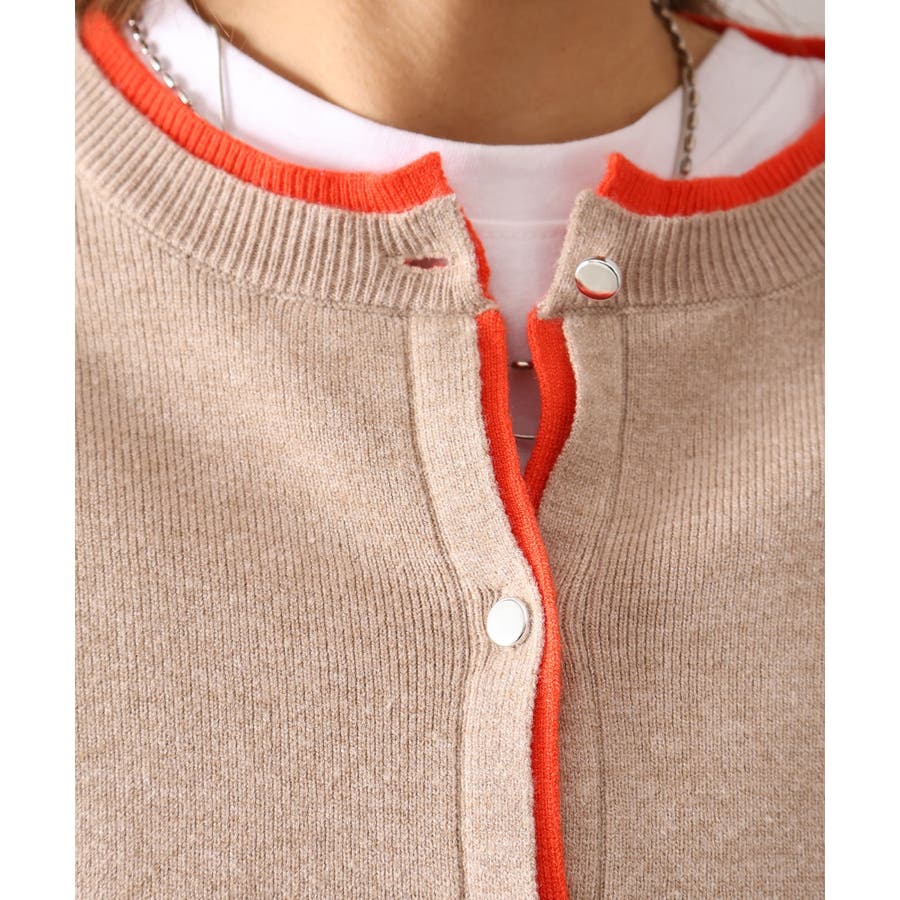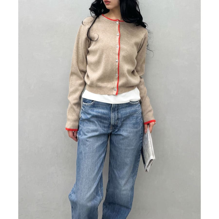 一気に垢抜け。視線を奪う「主役級」配色カーディガン!ベーシックなカーディガンに、エッジの効いた配色ラインをプラス。袖を通すだけでパッと顔まわりを明るく見せ、こなれ感を演出してくれる一枚です。計算されたコンパクトな丈感は、ハイウエストのボトムスやワンピースとも相性抜群。ボタンを閉じてプルオーバー風に着こなすのもおすすめです。