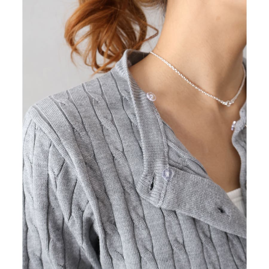 立体感のあるケーブル編みが表情をプラスし、きちんと感とカジュアルさをバランスよく演出します。
