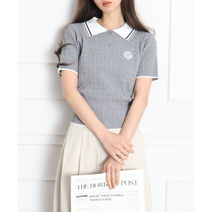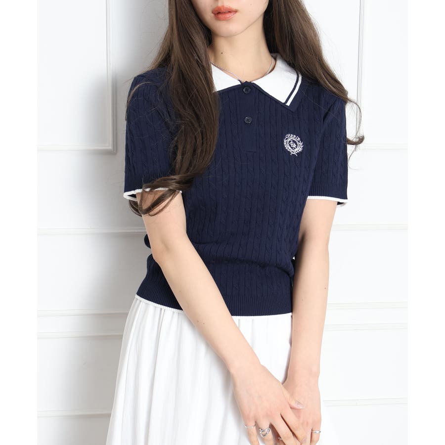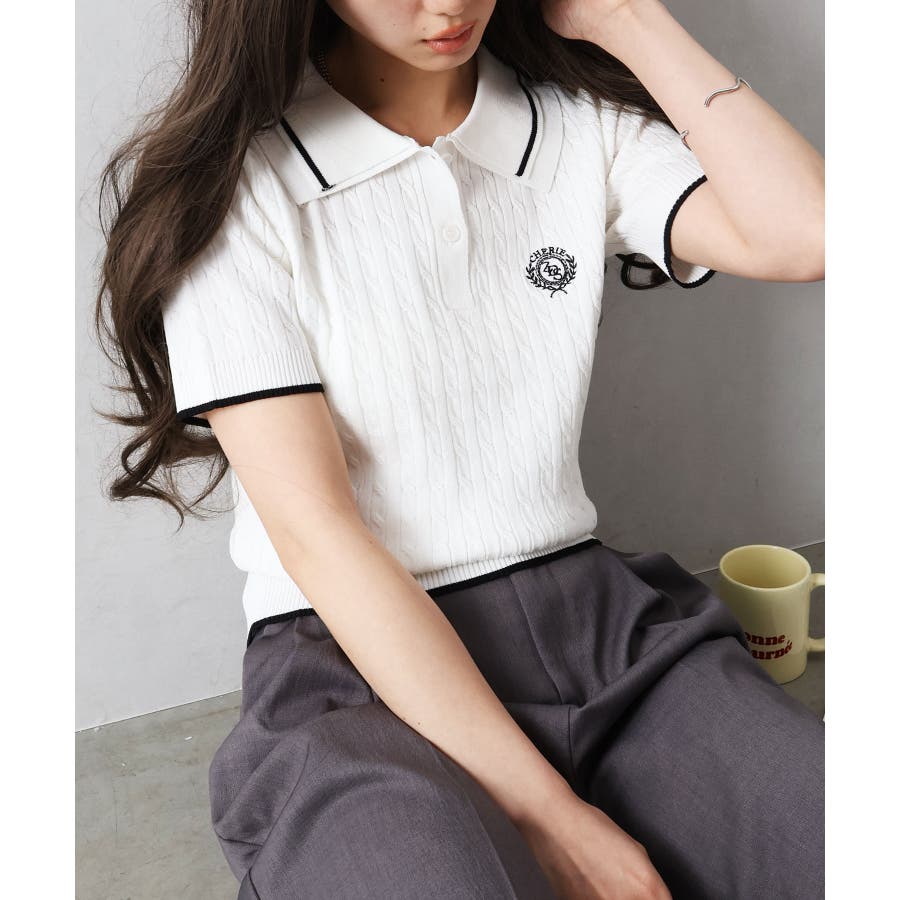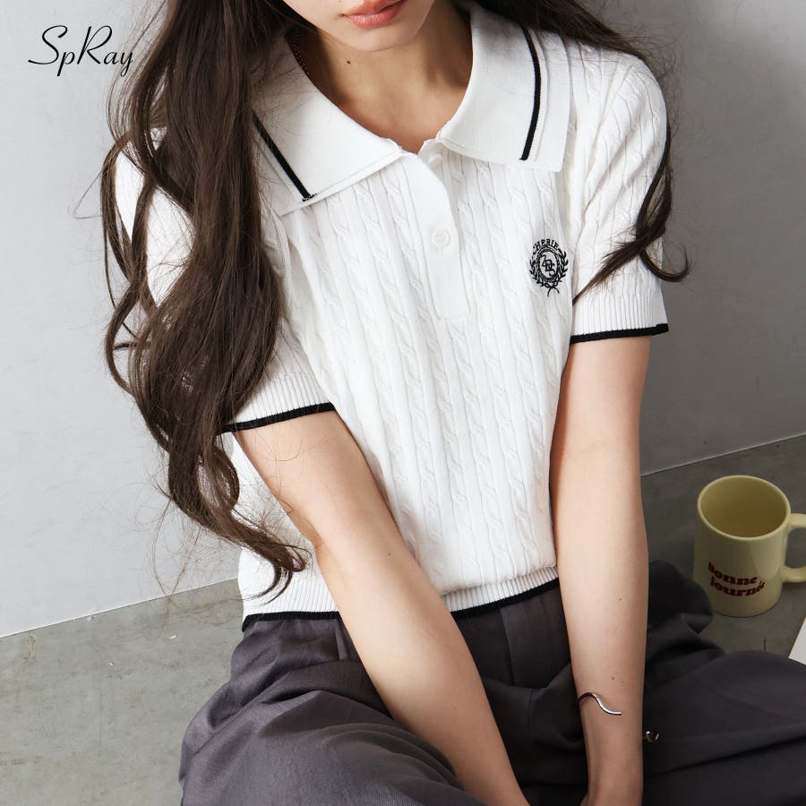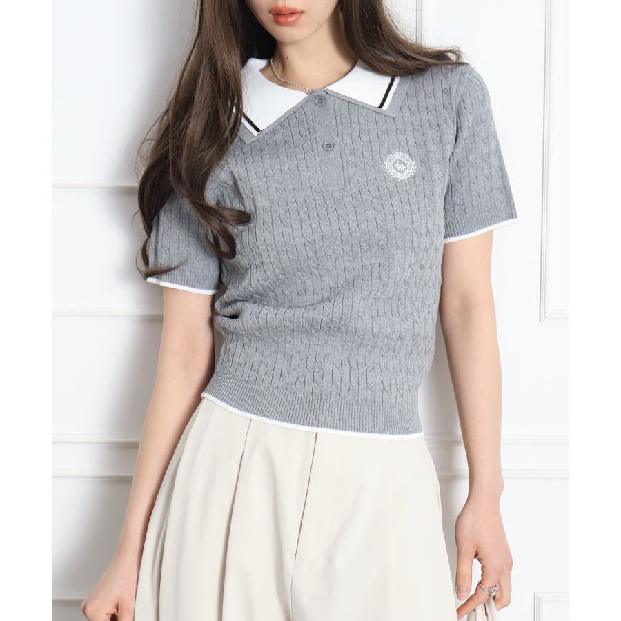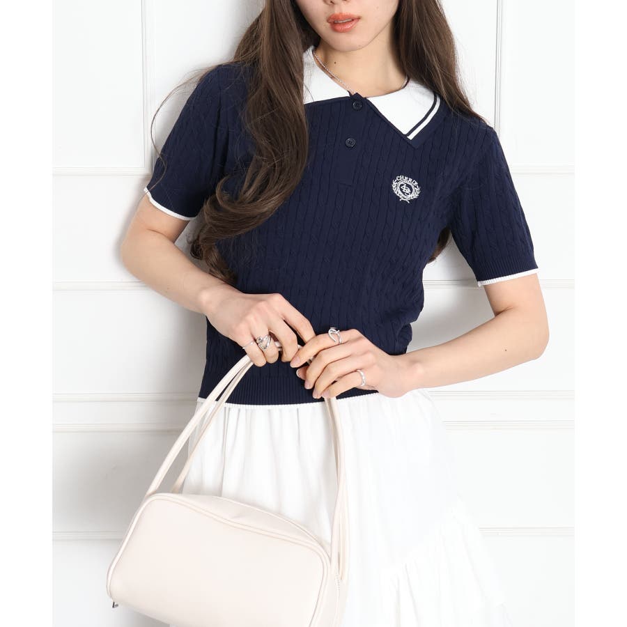 着るだけでトラッドな旬顔に。2枚衿が映える主役級ケーブルニット!立体感のあるケーブル編みと、配色ラインの効いた「2枚衿」がポイントのポロニット。胸元のエンブレム刺繍が、コーディネートに程よいトラッド感をプラスしてくれます。1枚でさらりと着ても手抜き感が出ず、顔回りを華やかに演出してくれる、この春夏持っておきたい1着です。