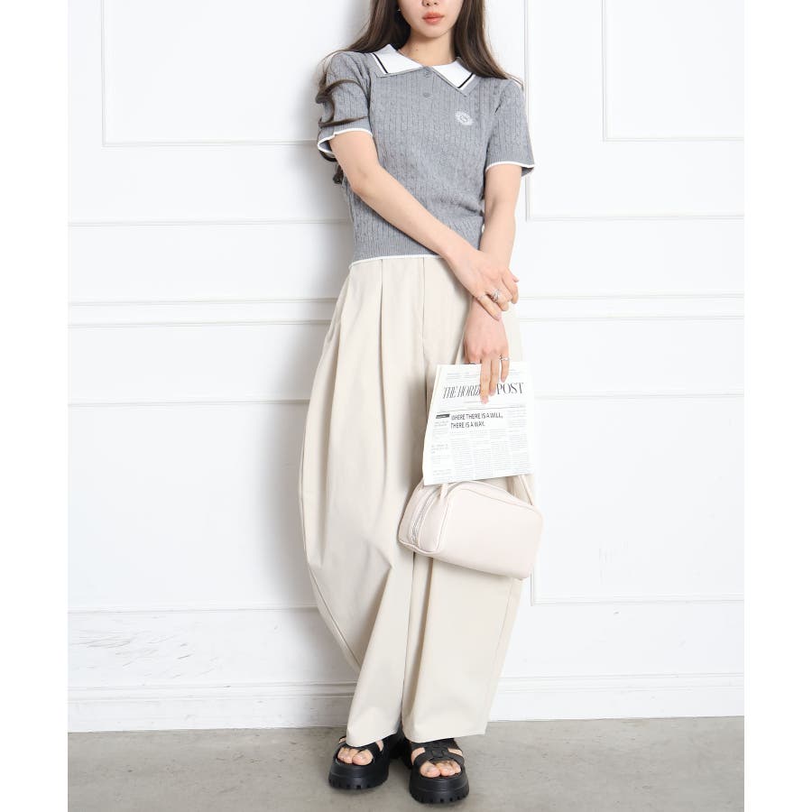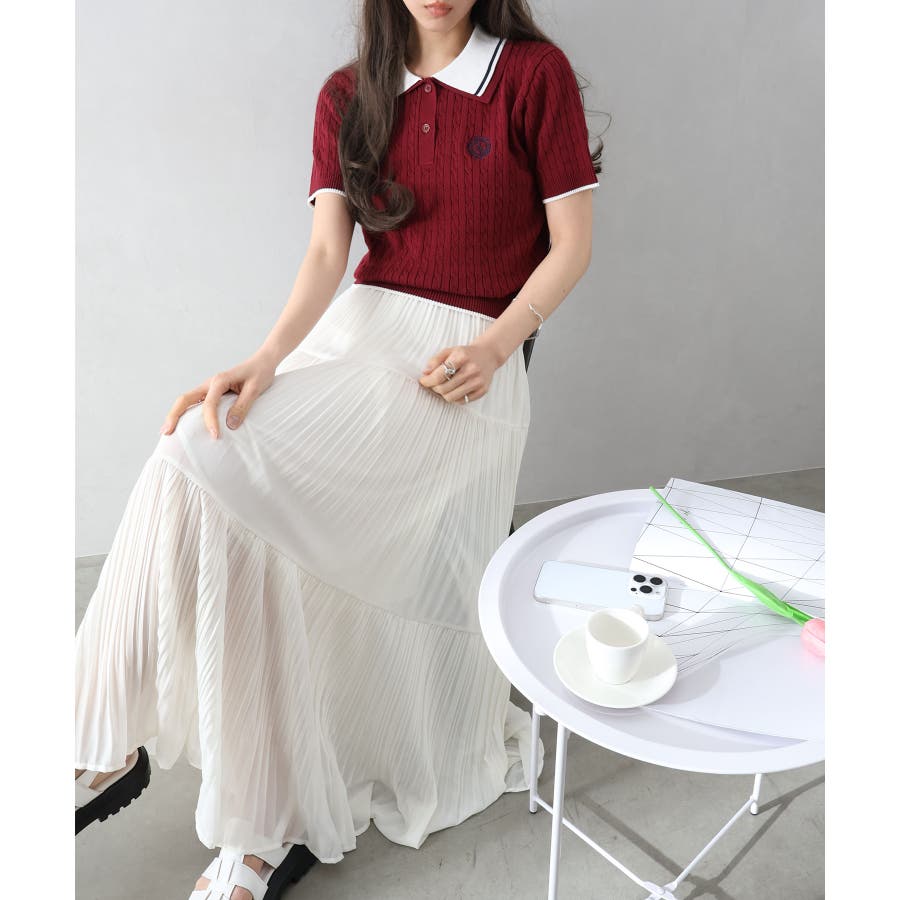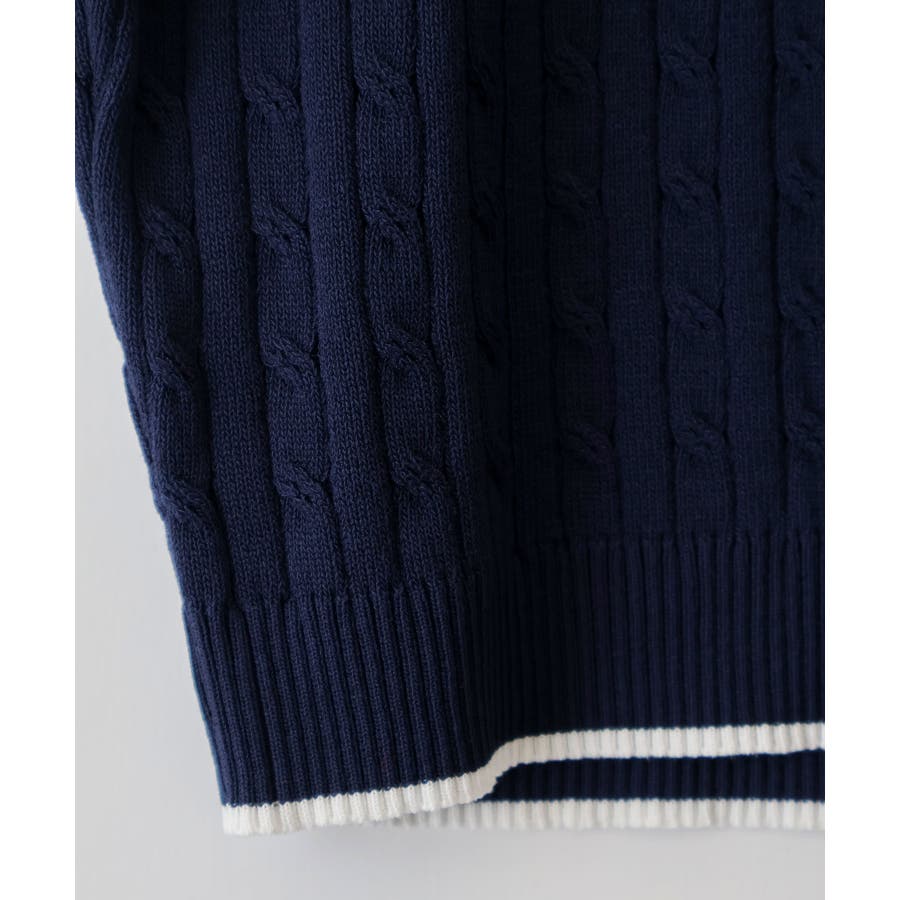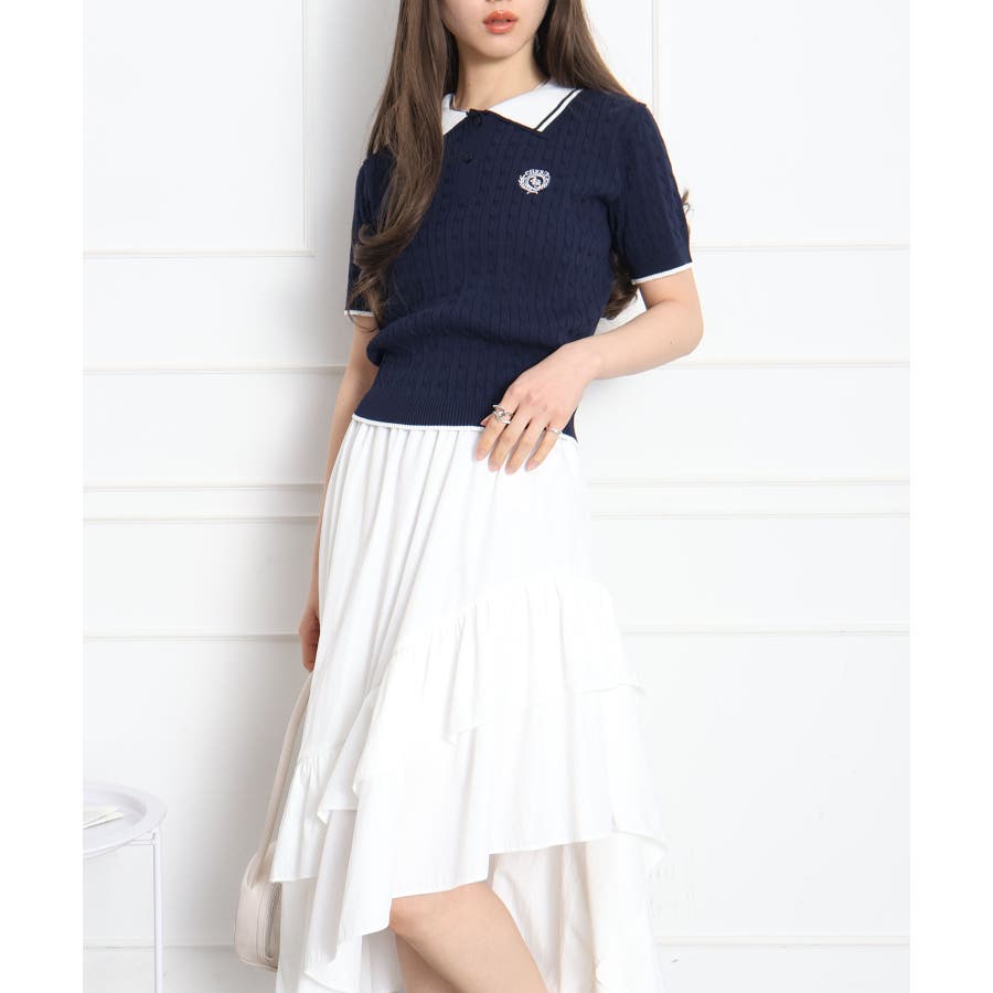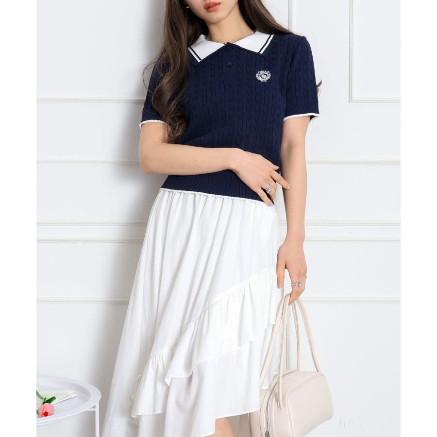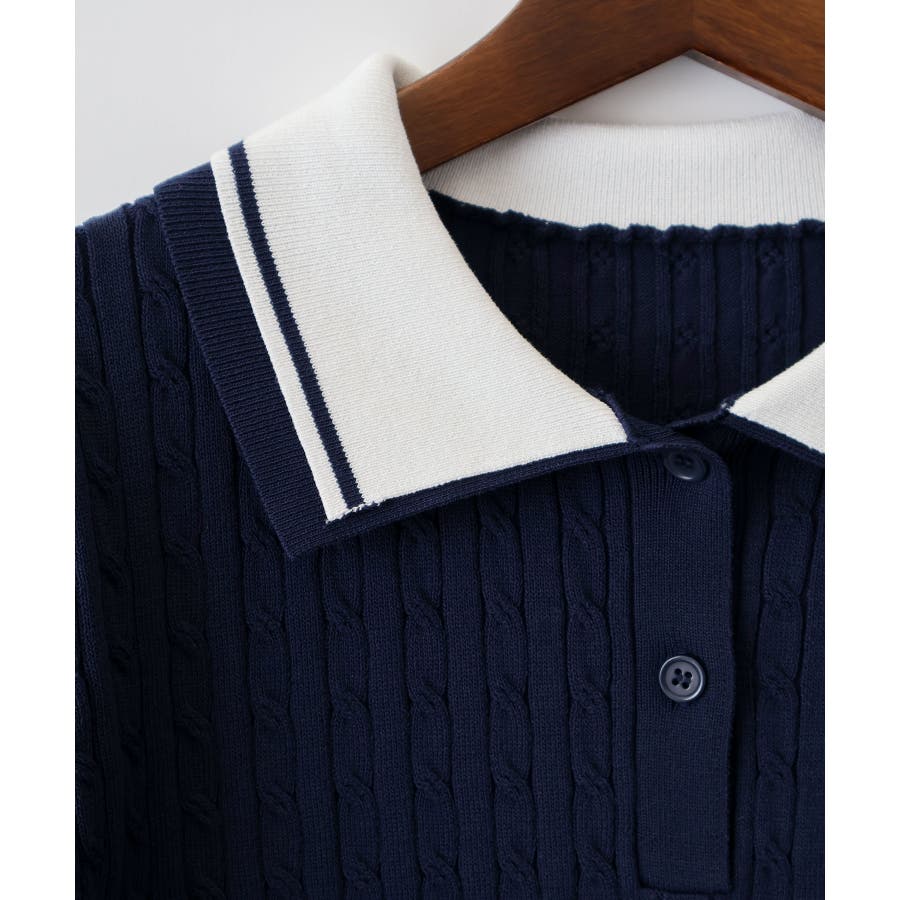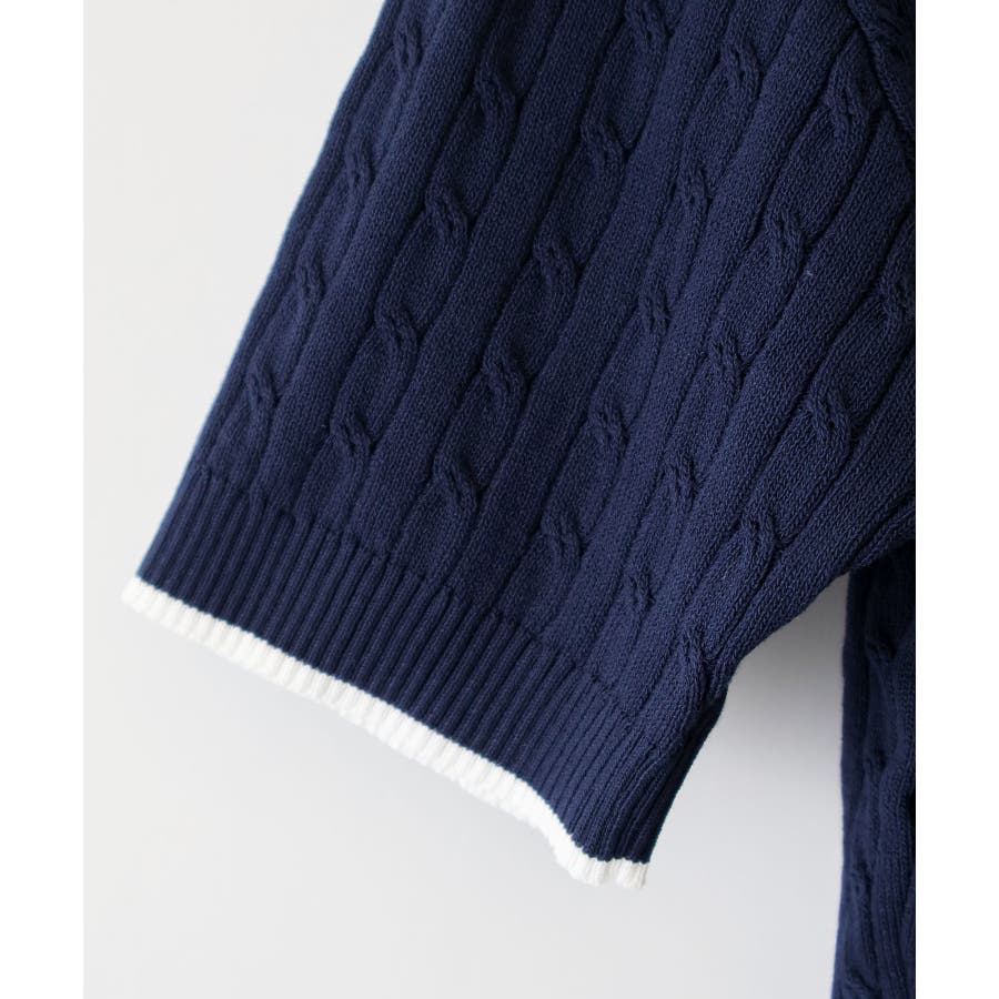 着るだけでトラッドな旬顔に。2枚衿が映える主役級ケーブルニット!立体感のあるケーブル編みと、配色ラインの効いた「2枚衿」がポイントのポロニット。胸元のエンブレム刺繍が、コーディネートに程よいトラッド感をプラスしてくれます。1枚でさらりと着ても手抜き感が出ず、顔回りを華やかに演出してくれる、この春夏持っておきたい1着です。
