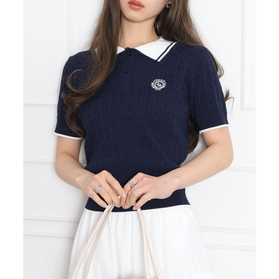 ケーブル2枚衿ショートスリーブ