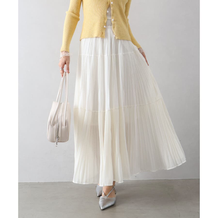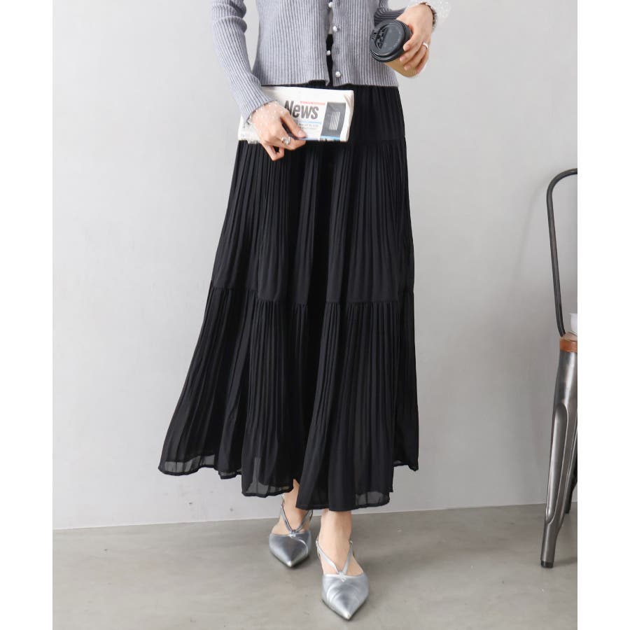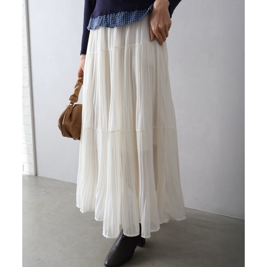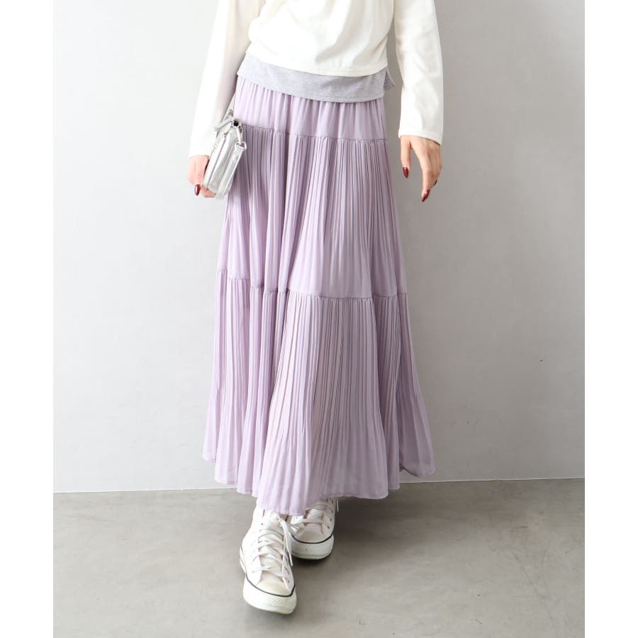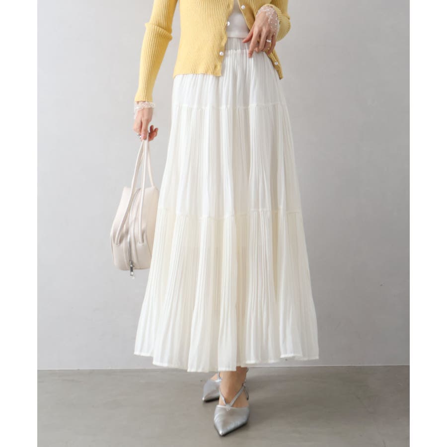 繊細なプリーツ加工を施した、軽やかな印象のティアードスカート。