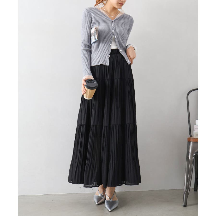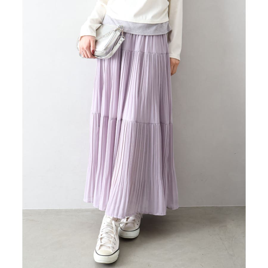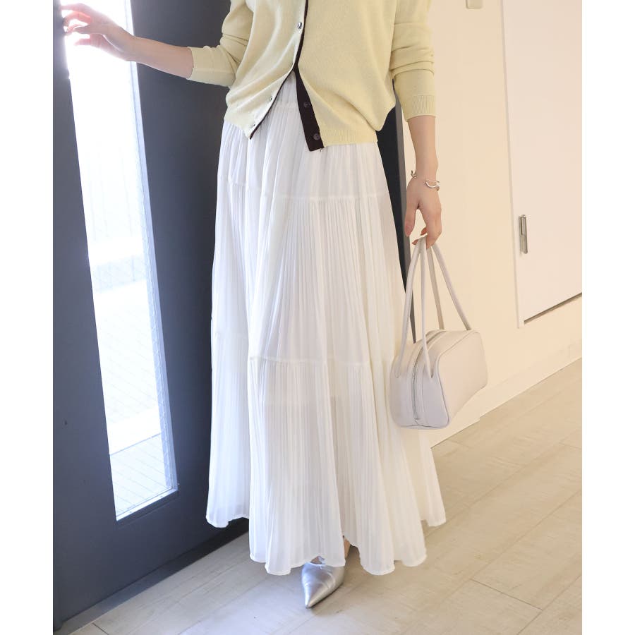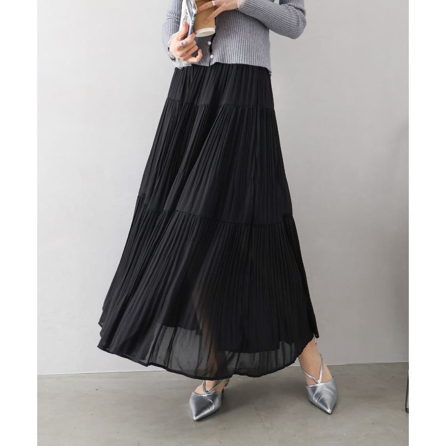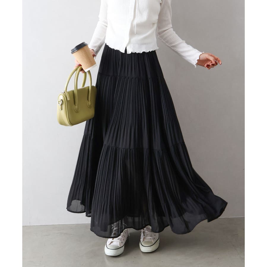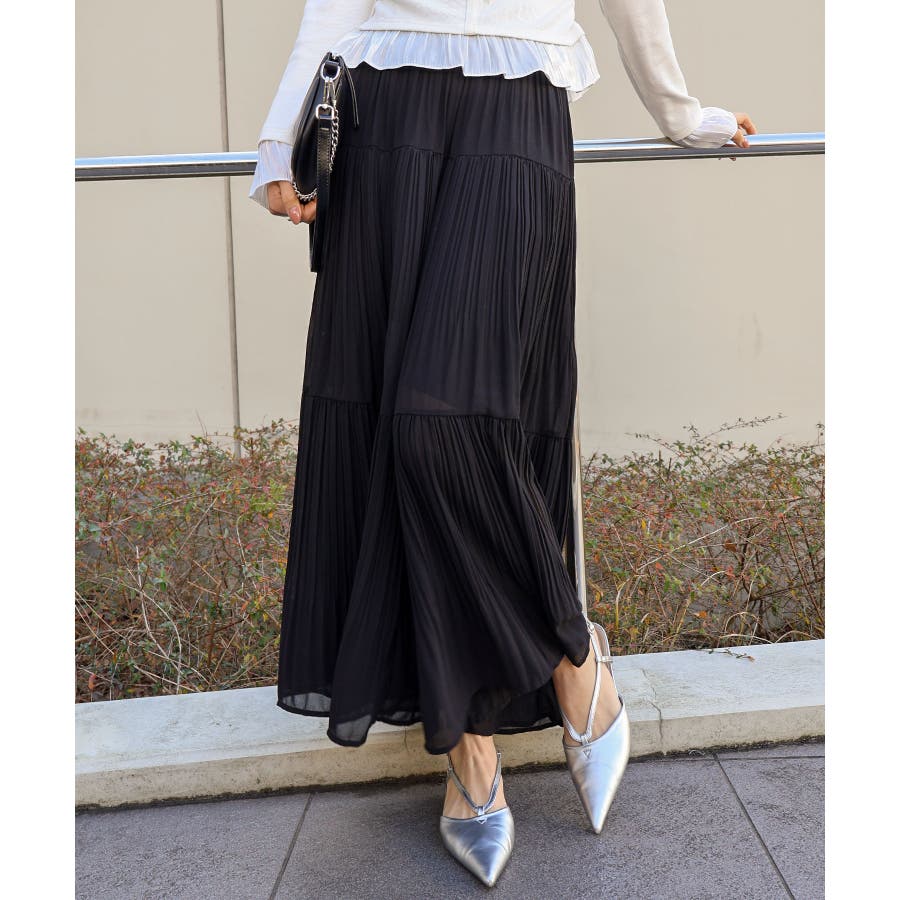 繊細なプリーツ加工を施した、軽やかな印象のティアードスカート。