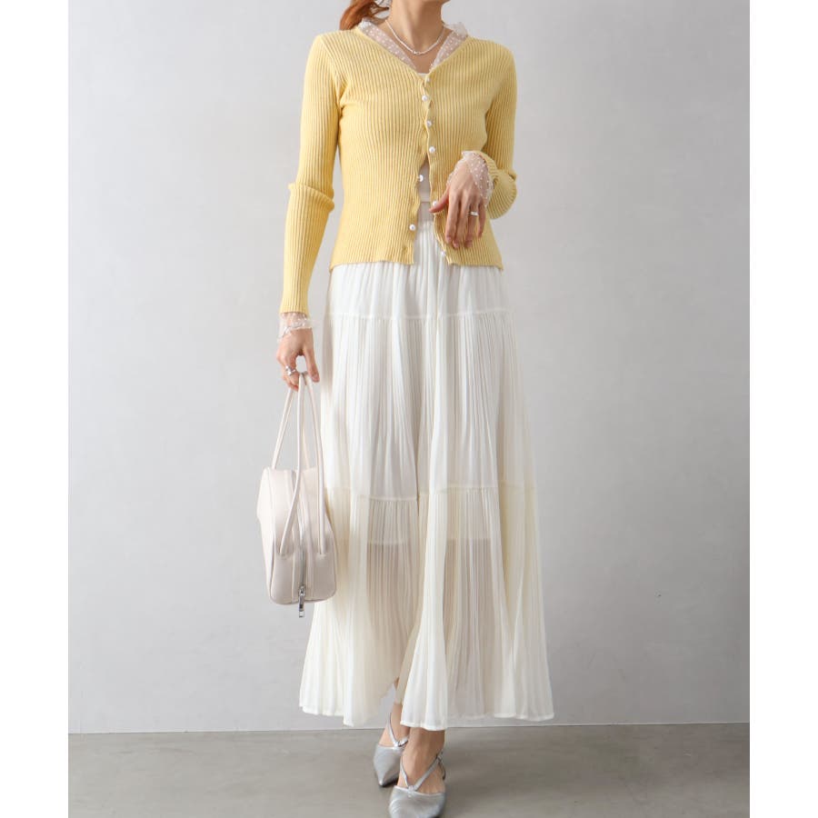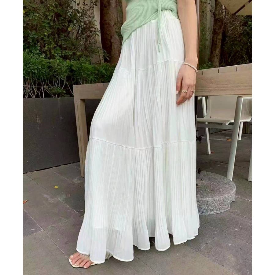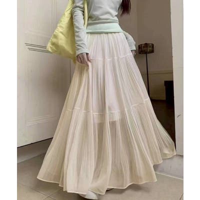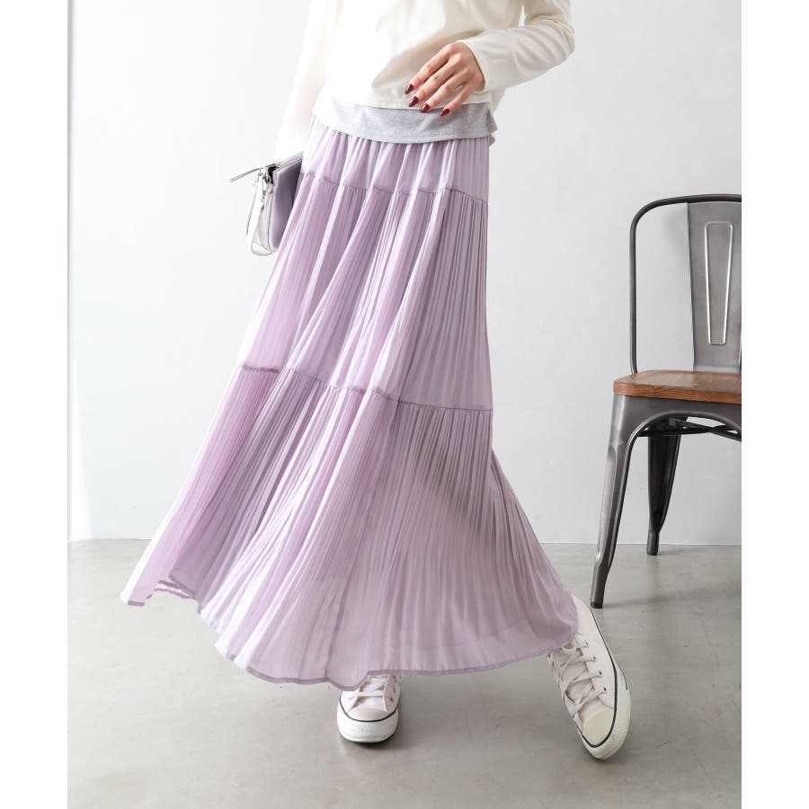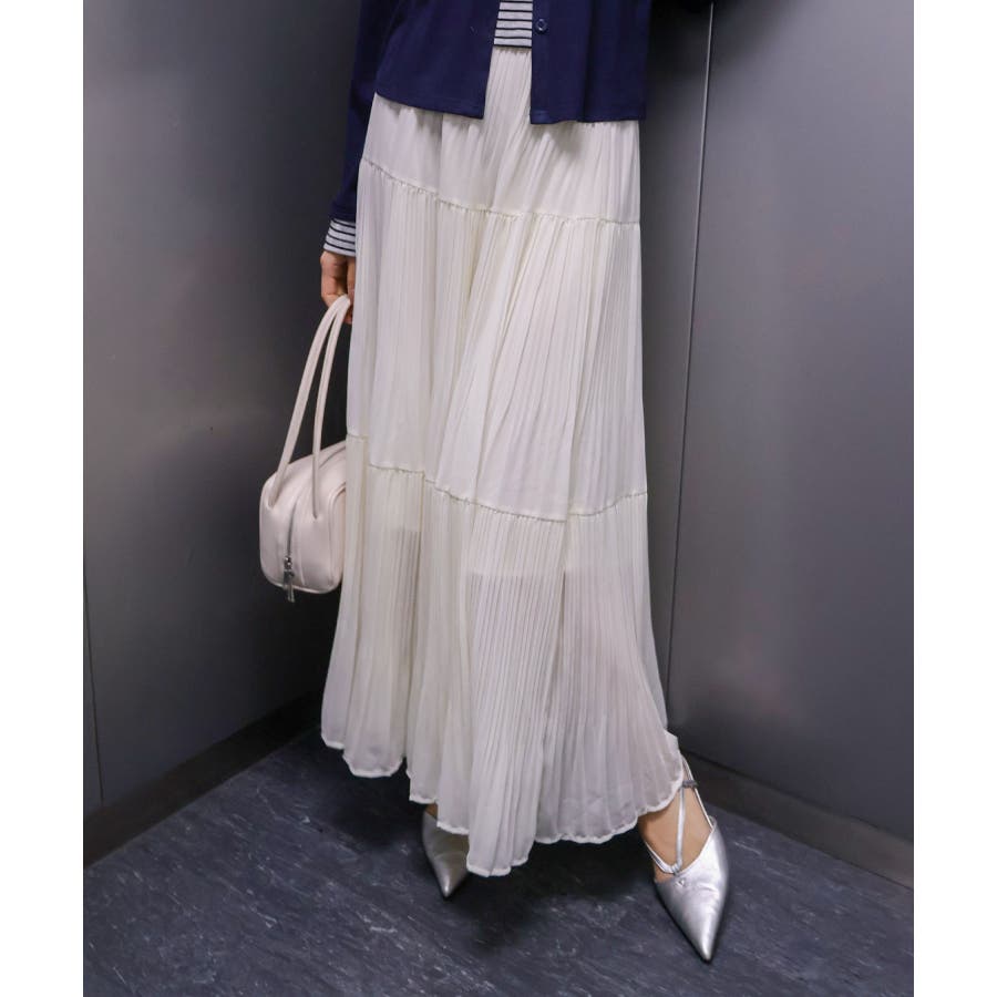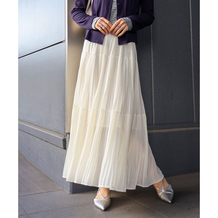 繊細なプリーツ加工を施した、軽やかな印象のティアードスカート。