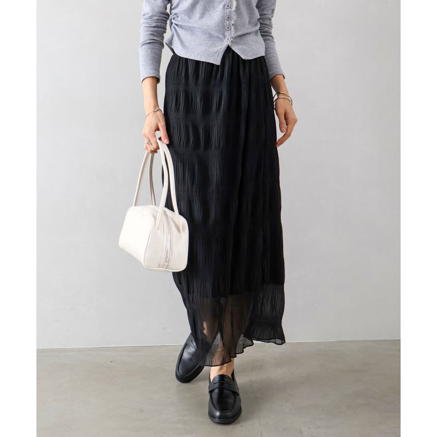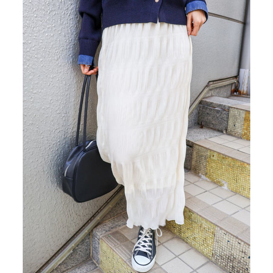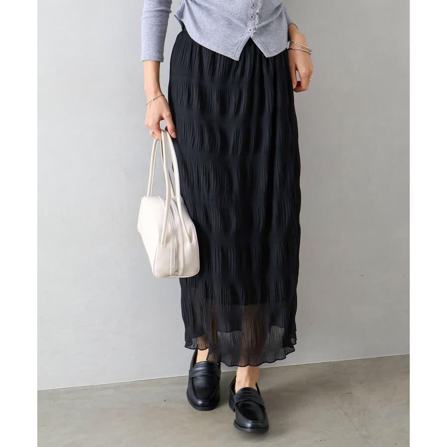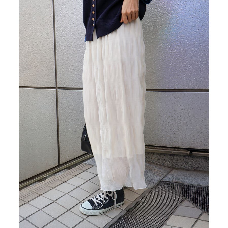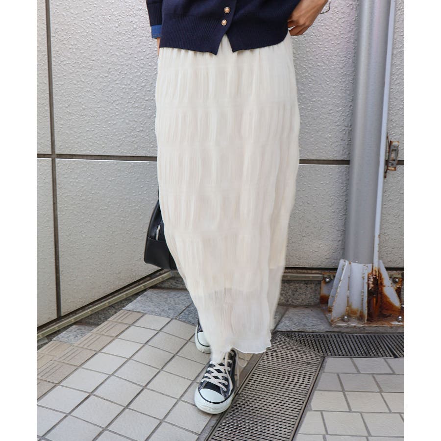 ふんわりとした凹凸感が魅力のマジョリカプリーツを施した、表情豊かなロングスカートです。