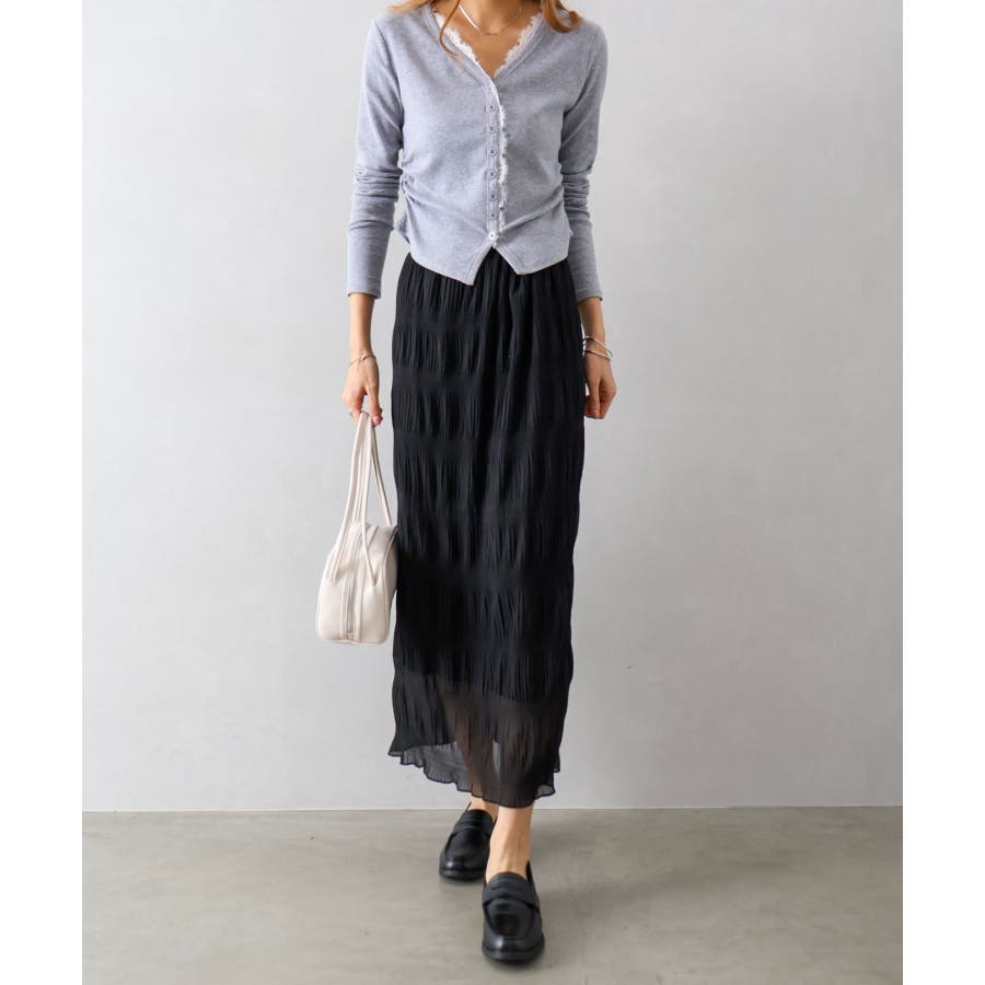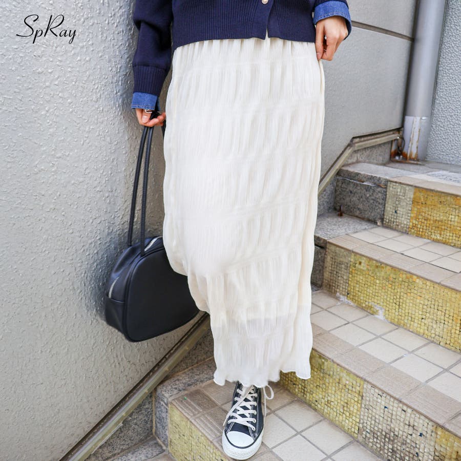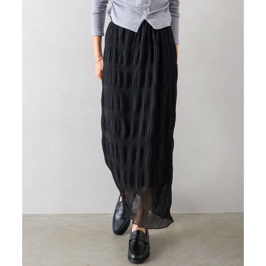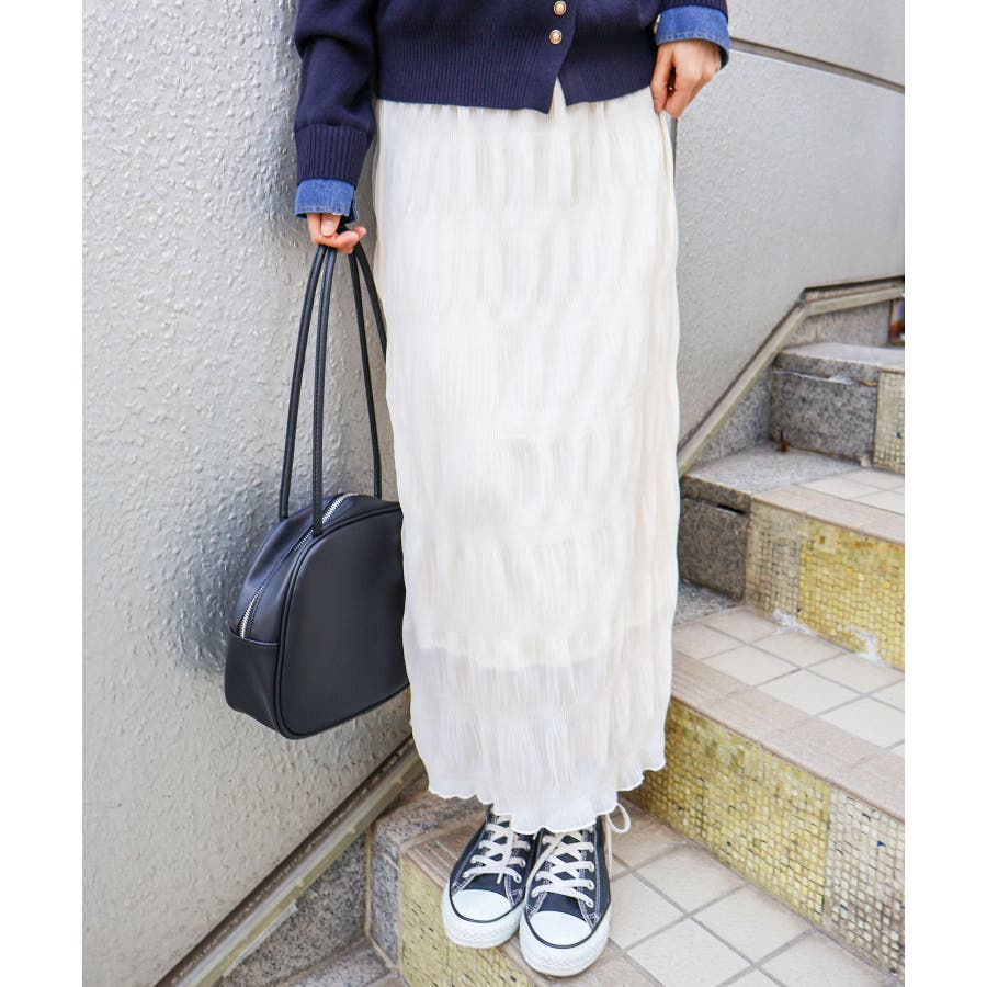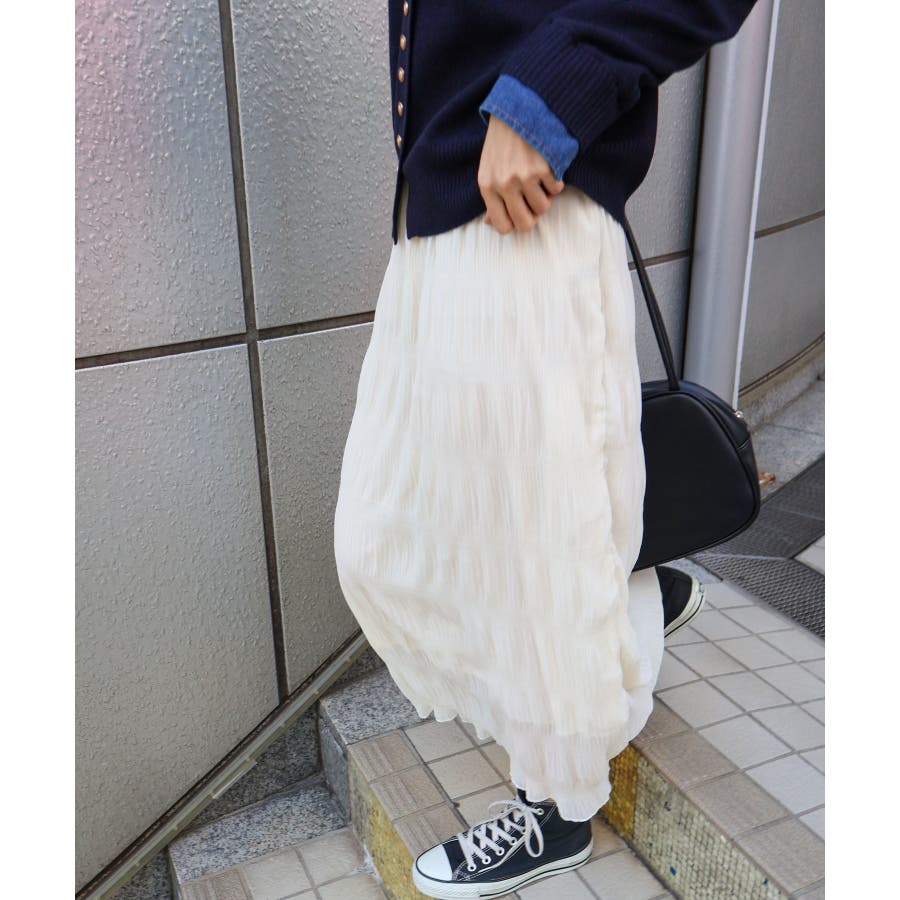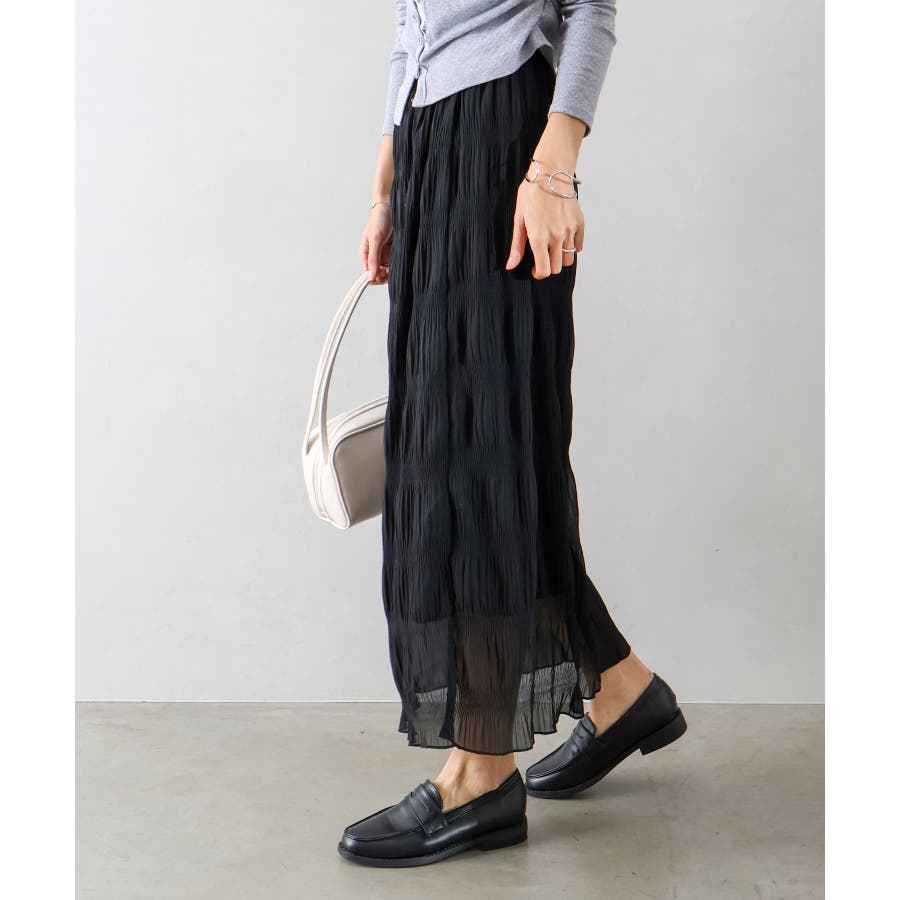 ふんわりとした凹凸感が魅力のマジョリカプリーツを施した、表情豊かなロングスカートです。