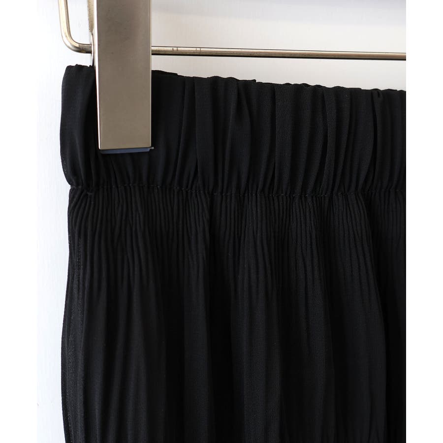 歩くたびに軽やかに揺れるエアリーな質感と、裾にかけて広がる繊細なプリーツが、女性らしく華やかなシルエットを演出します。