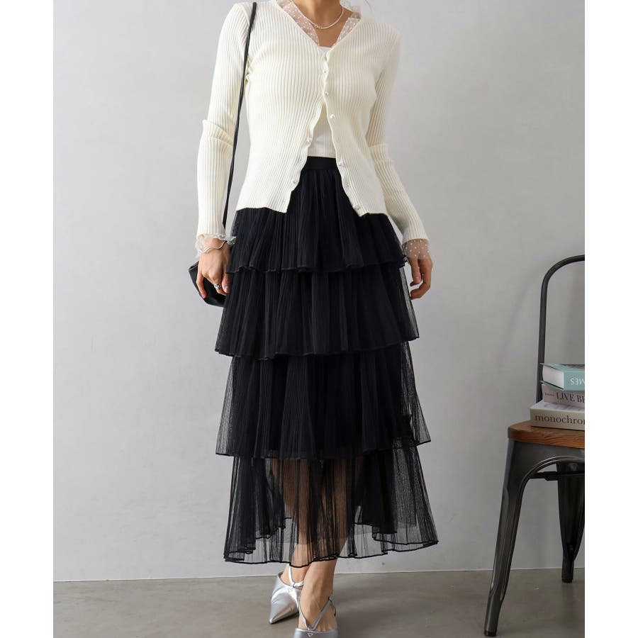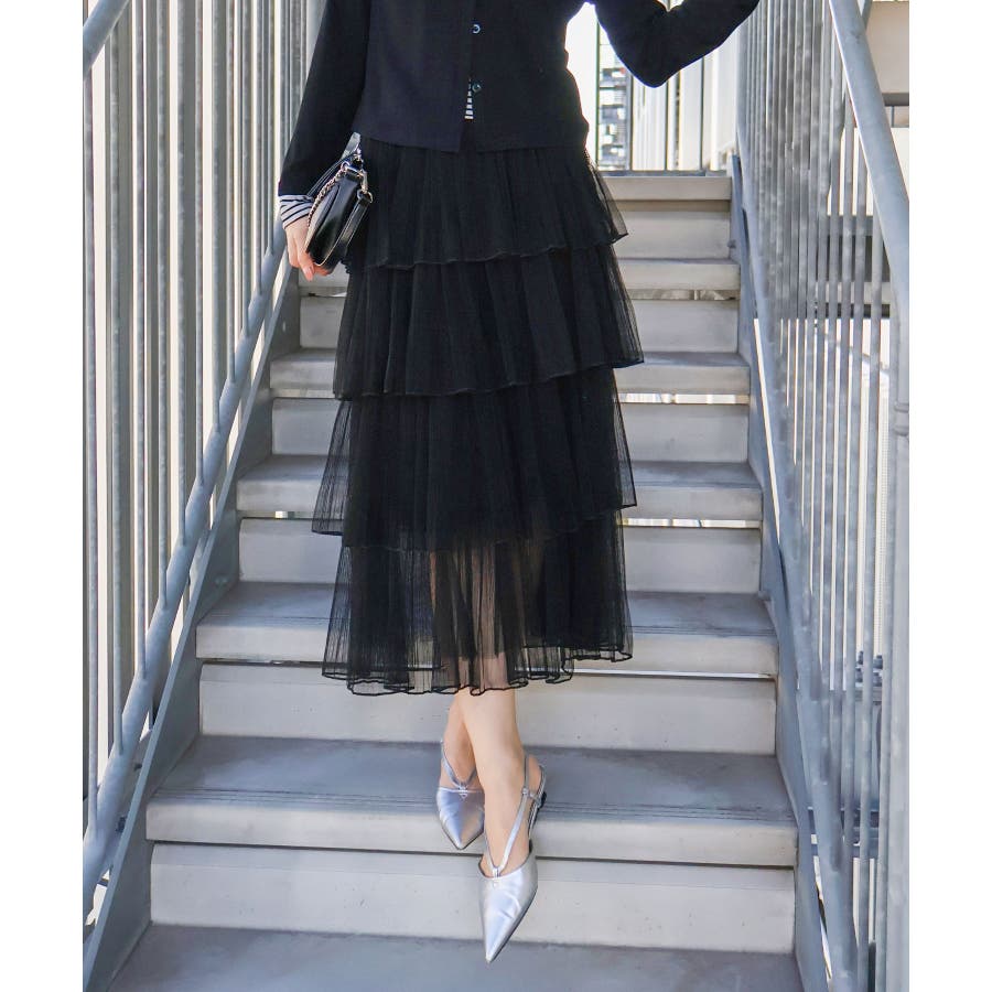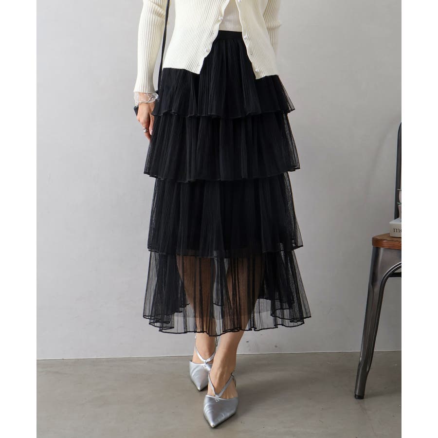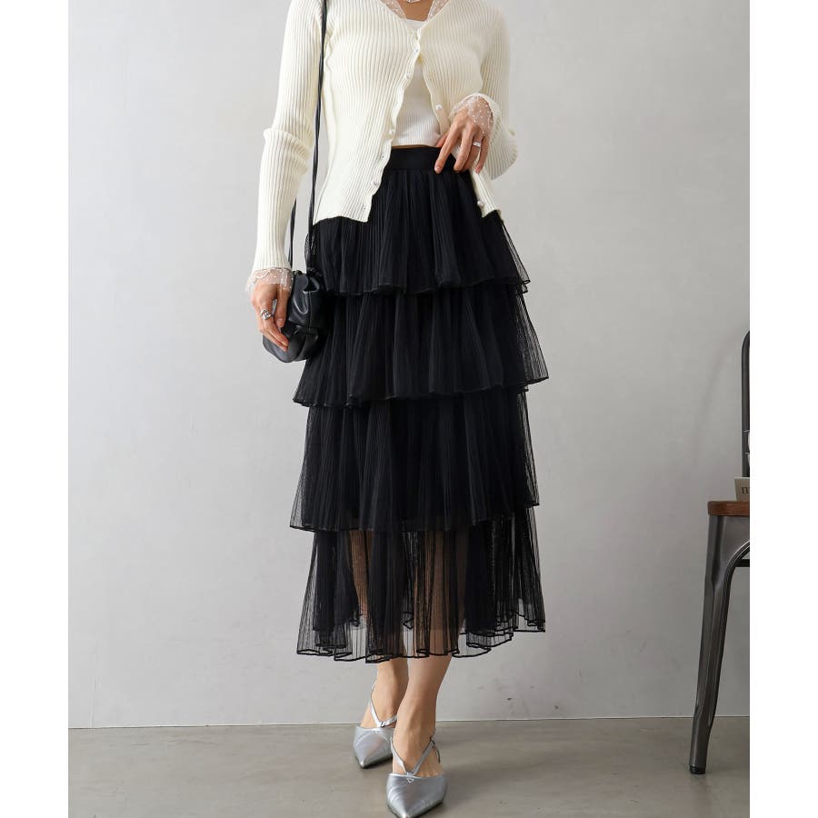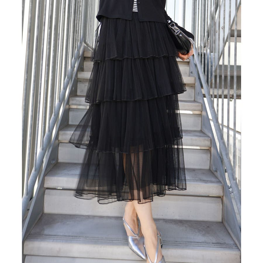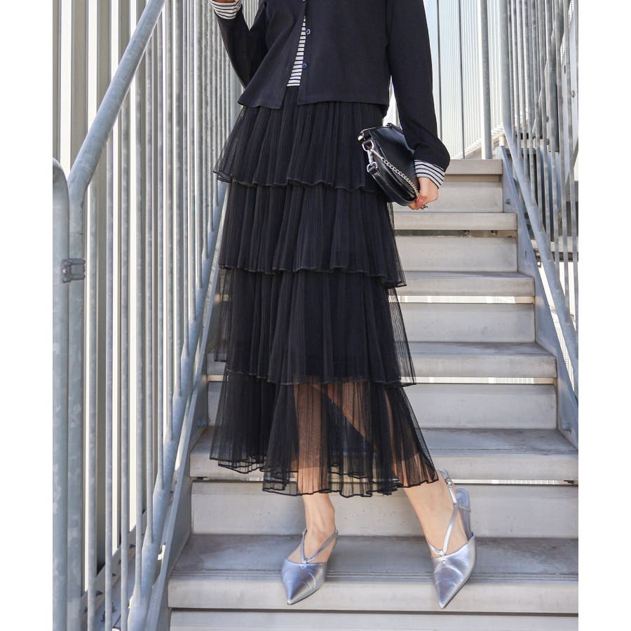 チュールティアードロングスカート