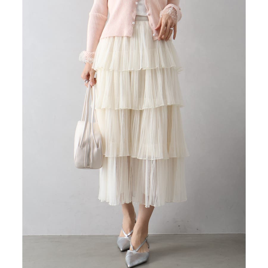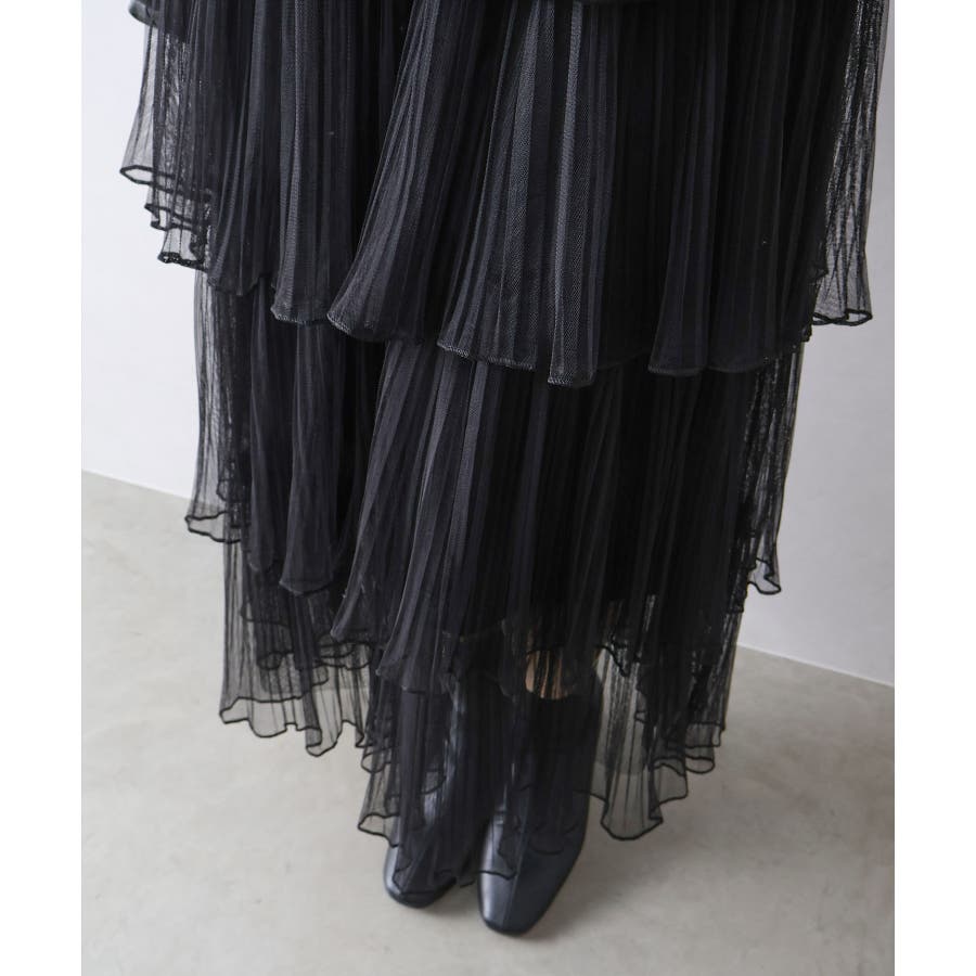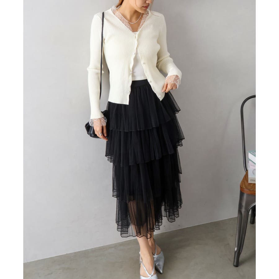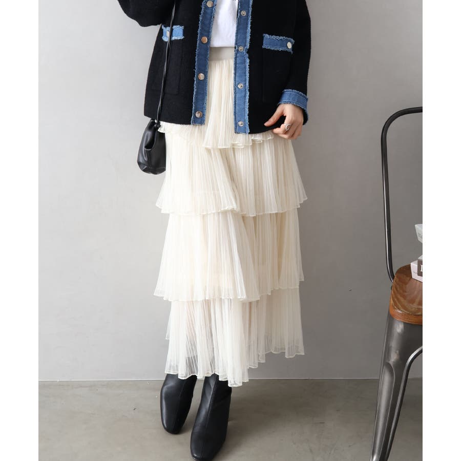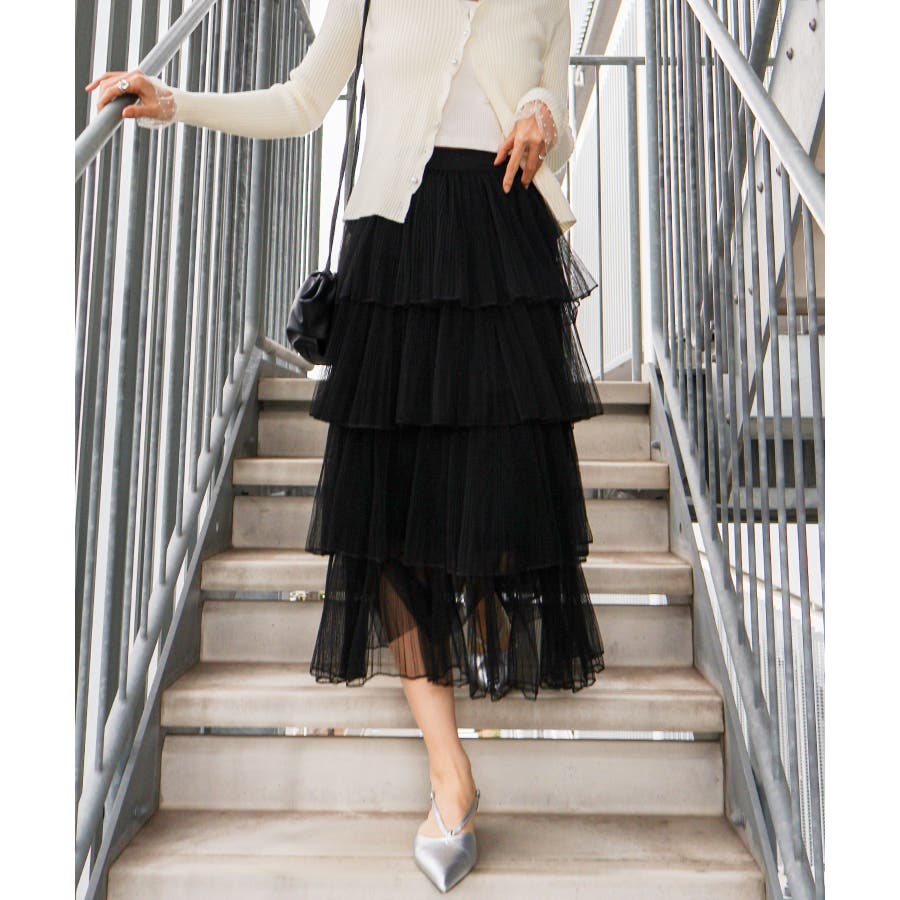 チュールティアードロングスカート