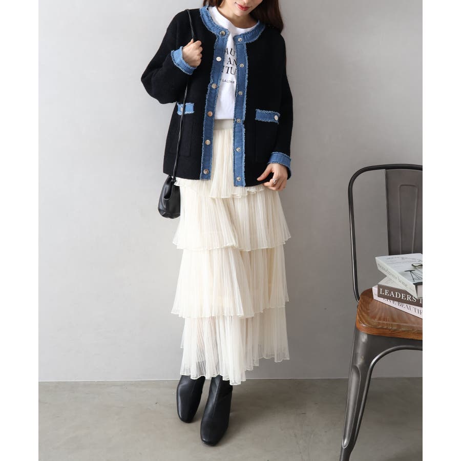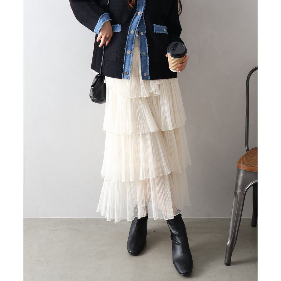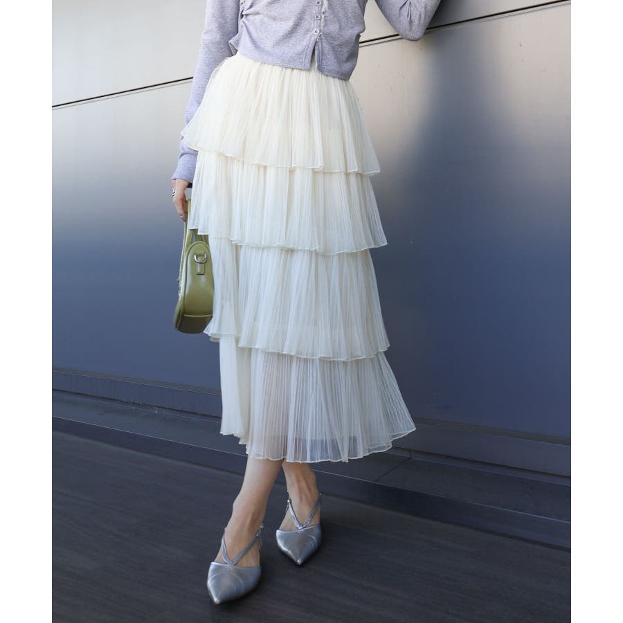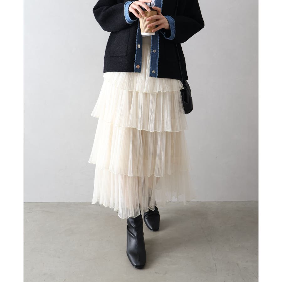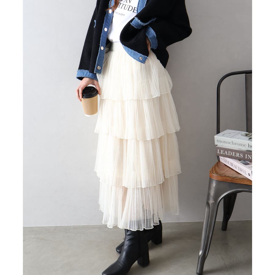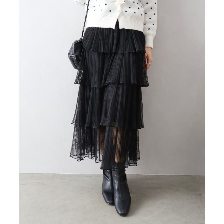 チュールティアードロングスカート