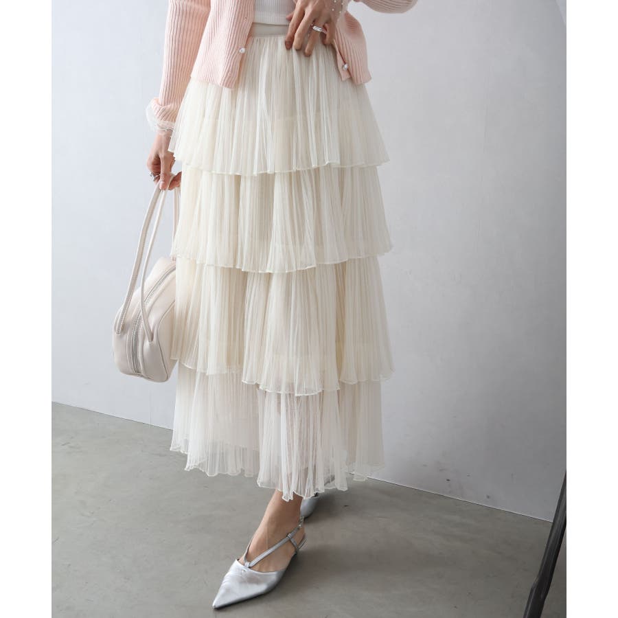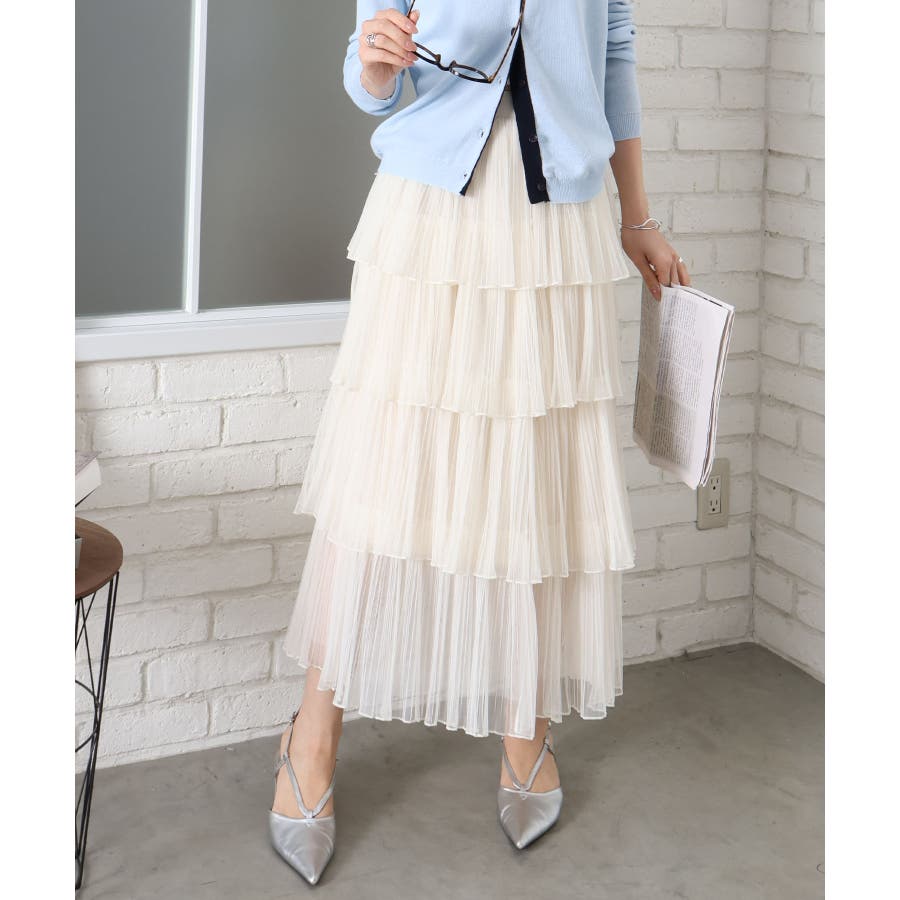 繊細なチュール素材を重ねた、華やかなティアードロングスカート。
