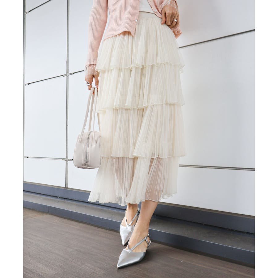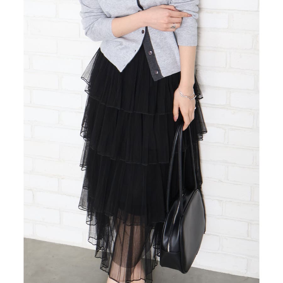 【SpRay チュールティアードロングスカート】