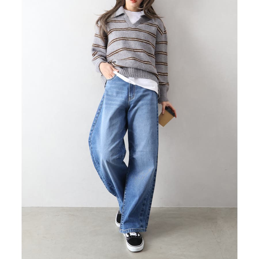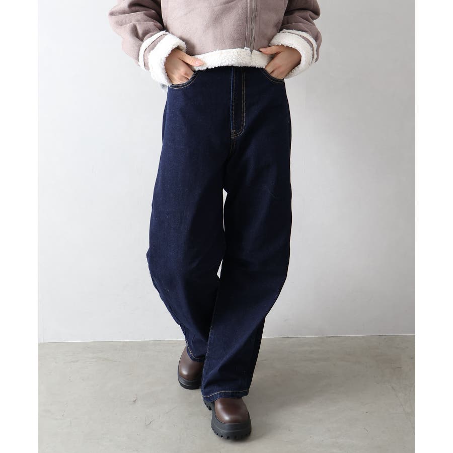 ゆるっとしたリラックス感がありながら、立体的なカーブシルエットで美脚見えを叶えるデニムパンツ。