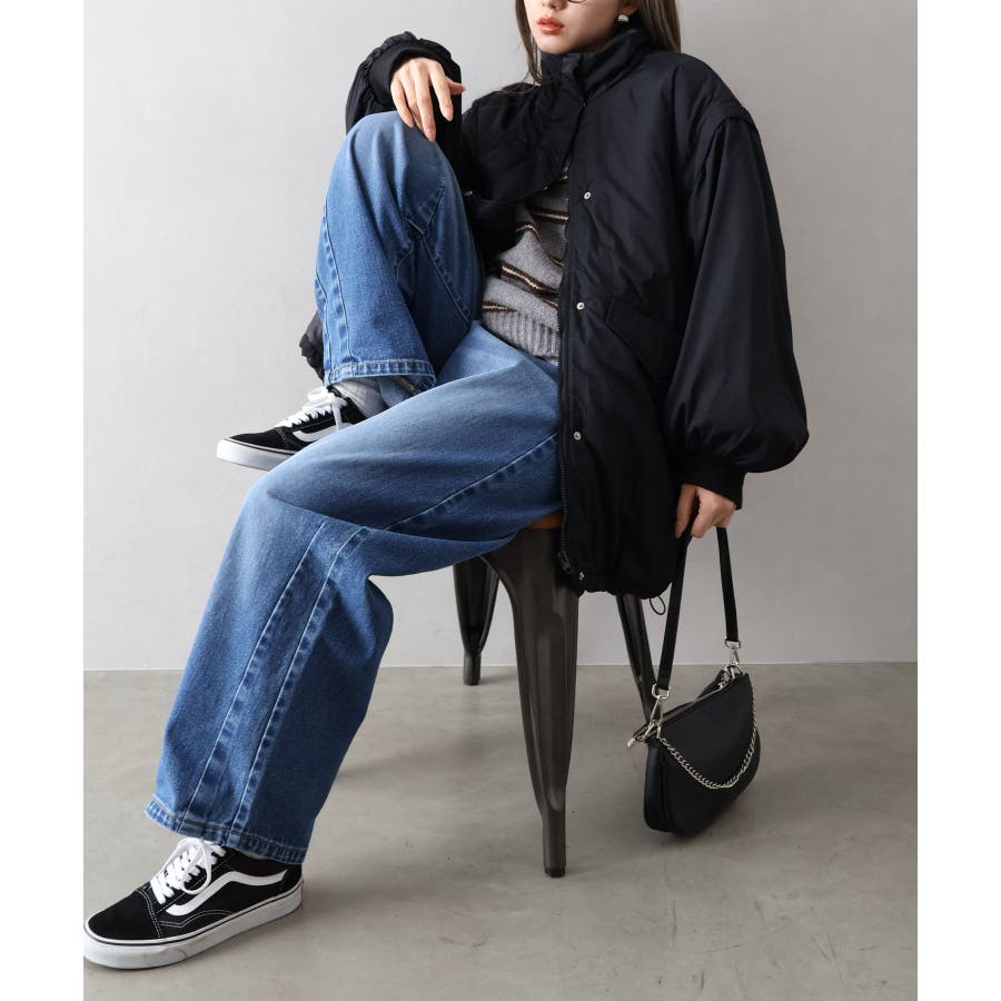 ウエスト周りはすっきり見える仕様で、体型カバーしながらトレンド感を楽しめる一本。