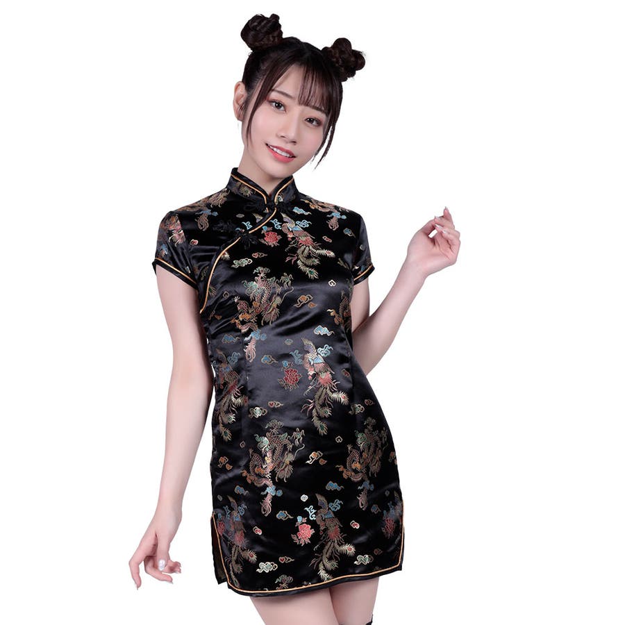 高級感あふれる光沢サテン生地に、伝統的な龍と牡丹の刺繍が施された本格派チャイナドレス。上品なブラックを基調とし、ゴールドのパイピングがアクセントに。身体のラインに沿った美しいシルエットで、フェミニンかつエキゾチックな魅力を引き立てます。サイドスリット入りで動きやすく、撮影やイベント、コスプレにも最適な一着です。
