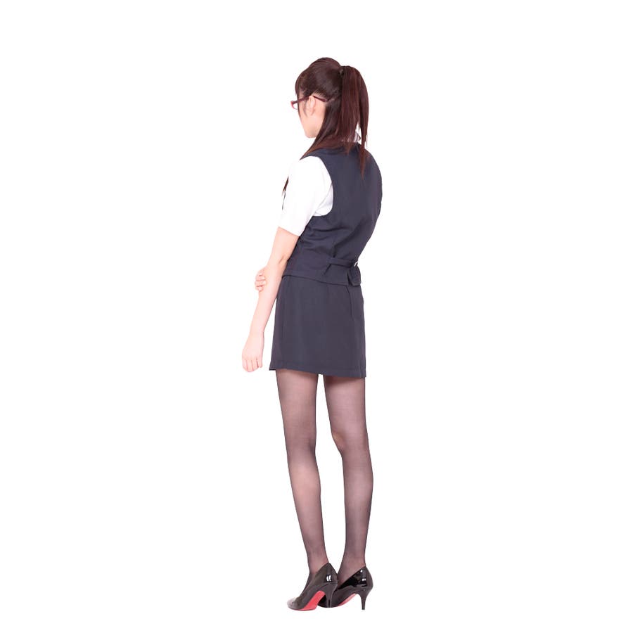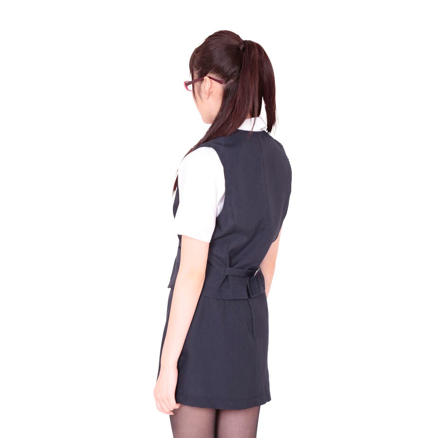 ネイビー☓ホワイトの清楚なカラーリングが決めて!仕事をテキパキとこなしそうな優秀OLに変身できるコスチュームセット♪3つボタンで留めるベストに爽やかな開襟ブラウス、超ミニ丈のタイトスカートをあわせるスタンダードタイプです。OLさんや銀行員など、マジメな雰囲気を感じさせてくれるのか一番のポイント♪男女問わず着用できます。