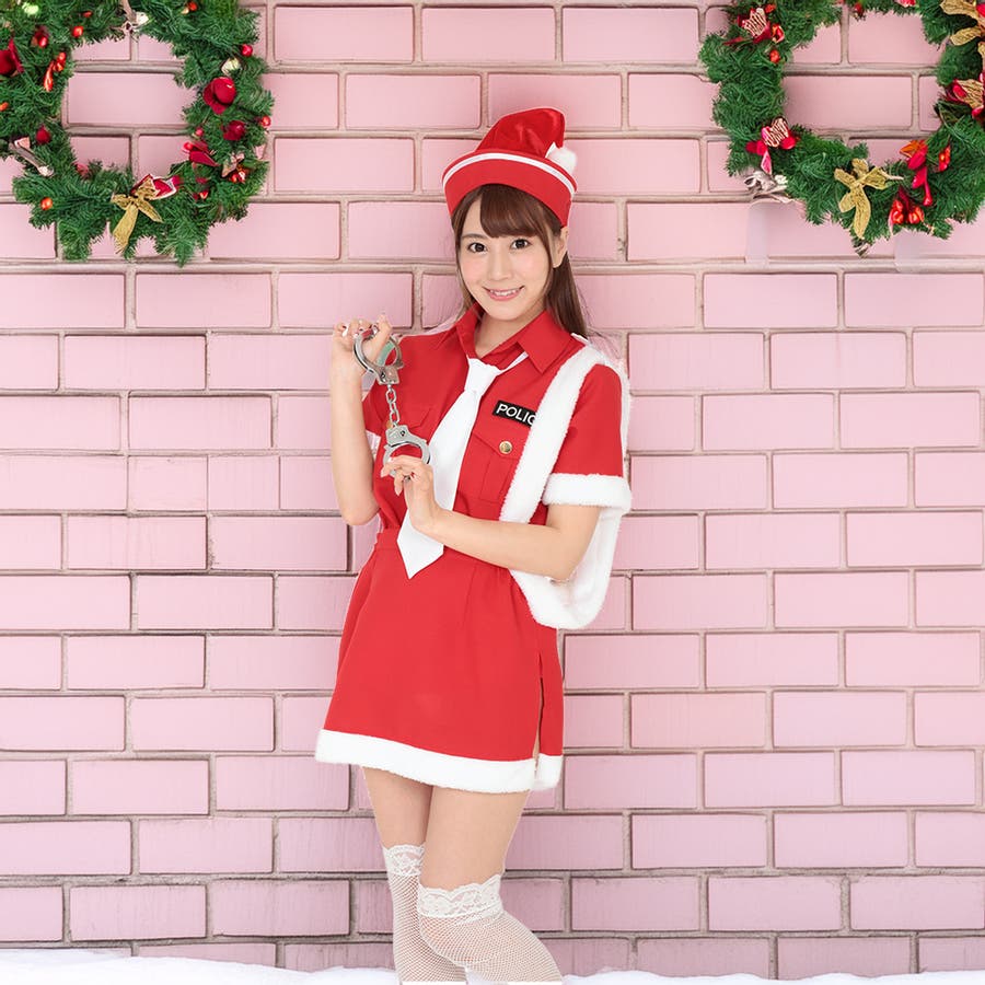 サンタカラーに身を包んだ、ちょっぴり小悪魔なポリスガールコスチューム♪ミニスカートは大胆なサイドスリットでセクシーさも演出。かわいさと強気さをミックスしたデザインは、イベントやパーティー、SNS映えにも最適です。