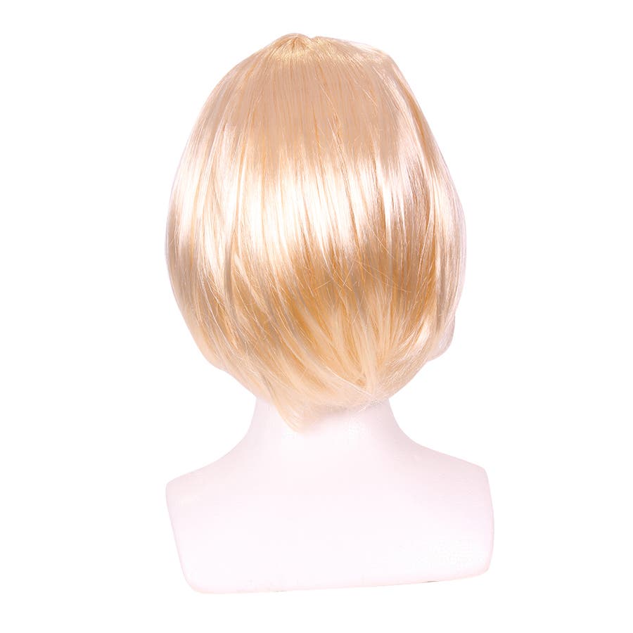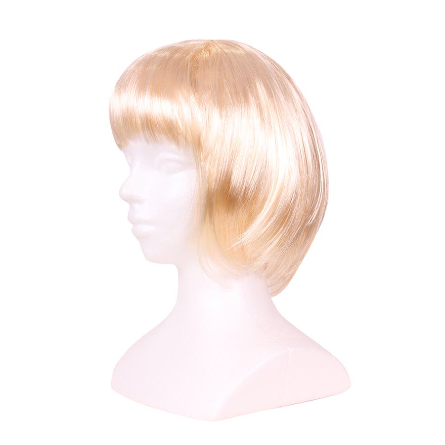 髪を切りたいけど、勇気がないし・・。そんな時につかえるショートボブウィッグ☆パッと明るいゴールドカラーは染める勇気がないあなたにもおすすめです◎前髪は少し幼げなパッツン!ですが、顔ラインに沿ったカットになっているので、大人な雰囲気と小顔効果もバツグン♪すぐにイメチェンができちゃう便利アイテムです。