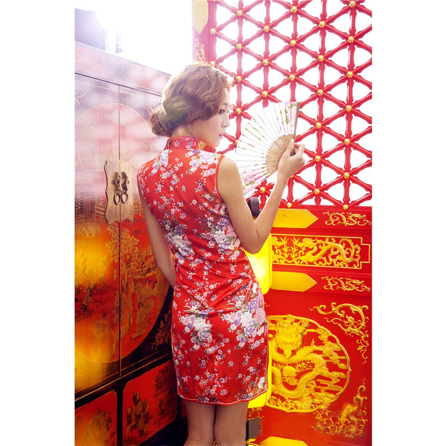 華やかな美人コーデでふとした仕草にも優雅さが宿ります。谷間を強調する胸元に思わず目がいくチャイナドレス。