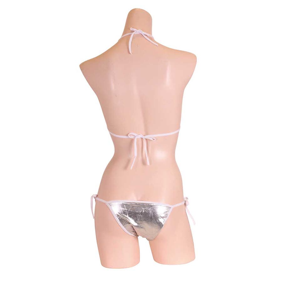 キラキラさせて今っぽくオシャレに目立ちたいならアクティブになれるメタリックビキニセット。リボンでサイズ調整してね。センセーションなシルバー。