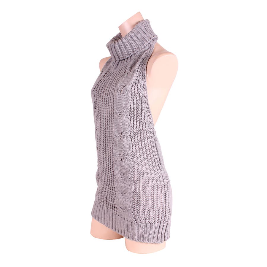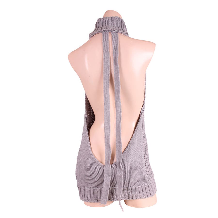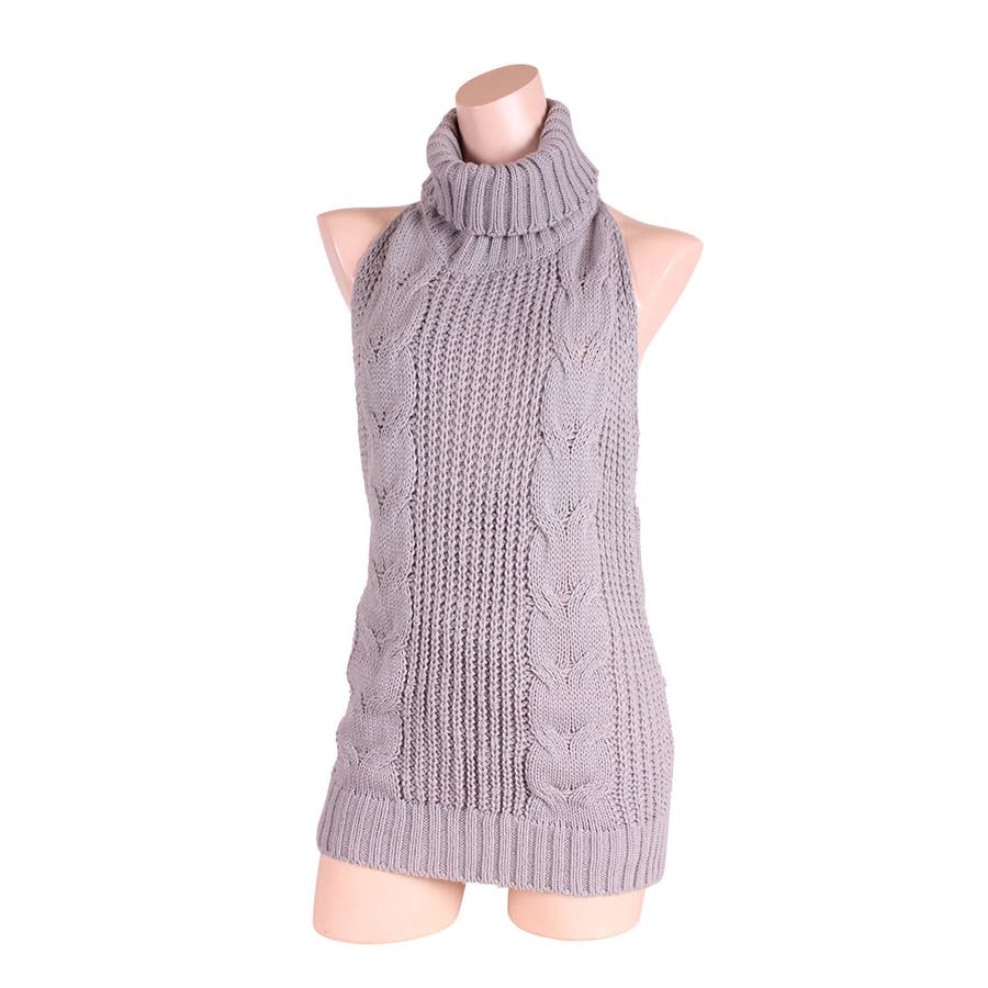 裸エプロンのように露出が多くて、それでいて女性が思わず着たくなるようなエロ可愛いセーター。背中が大きく開いていてノースリーブ、タートルネックデザイン。シックなグレー。