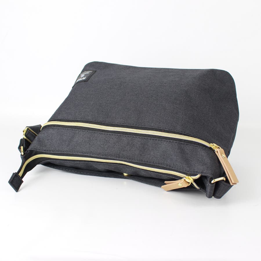 杢調ポリエステルとゴールド金具を使い合わせた、