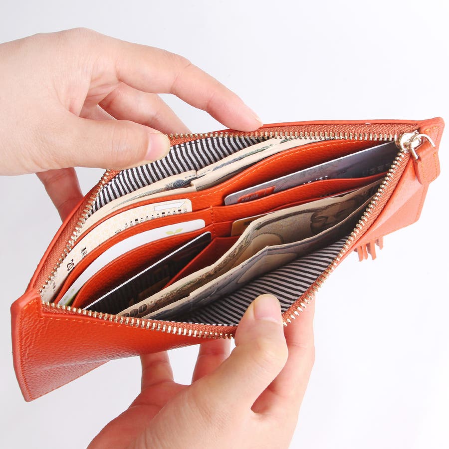 スリム設計ながら見た目以上の収納力!お札・カード・小銭・レシートと仕分けできる。