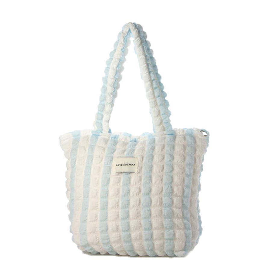 ぽこぽことしたポップコーン生地のトートバッグ。