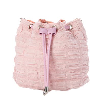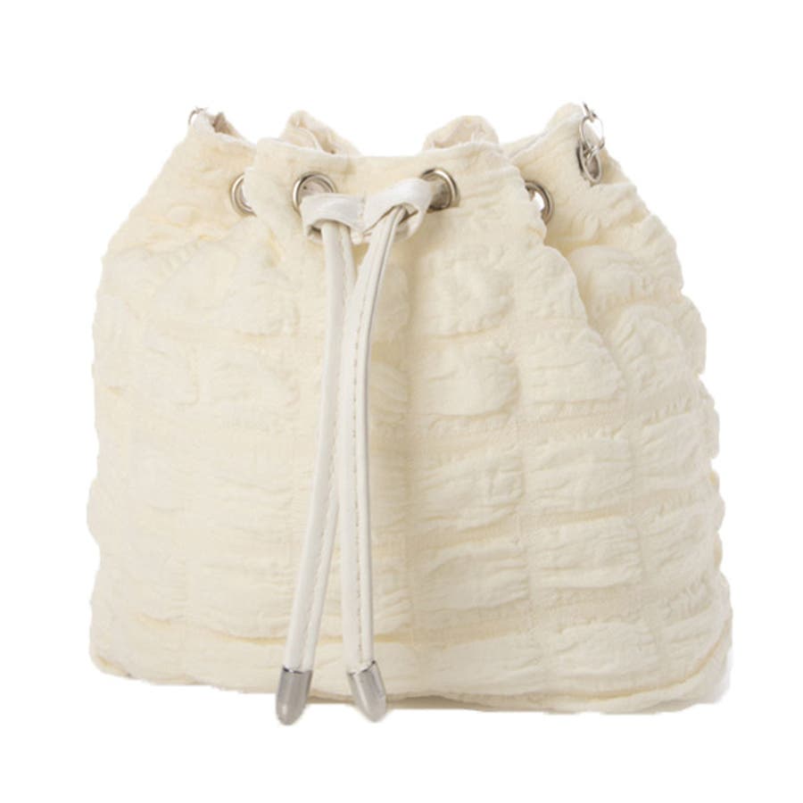 ぽこぽこポップコーン生地の巾着型ポーチ。
