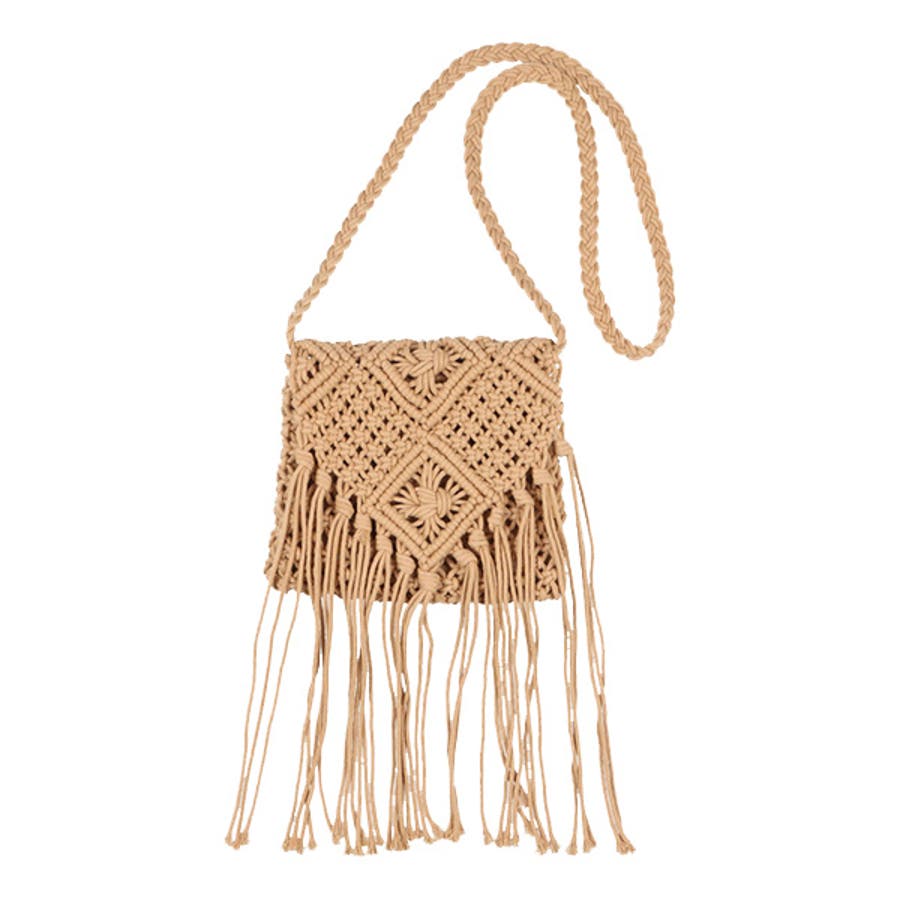 アクセサリー感覚で楽しめるマクラメ編みショルダーバッグ。