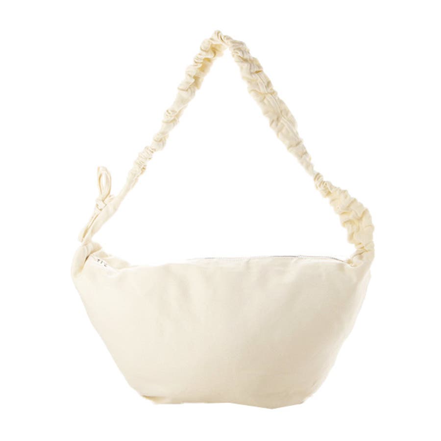 シャーリング&リボンデザインのストラップがかわいいショルダーバッグ。