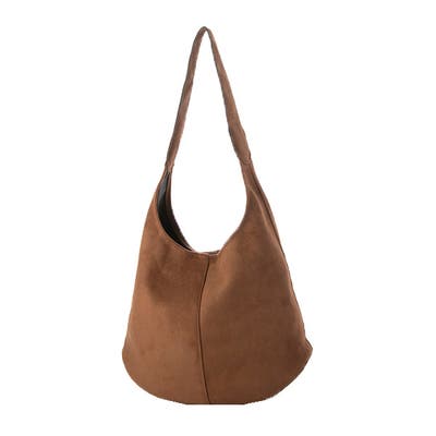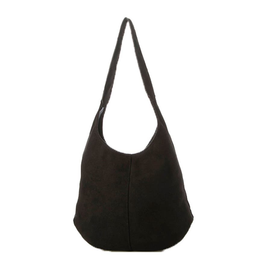 ころんとしたフォルムが特徴のスエード調ショルダーバッグ。