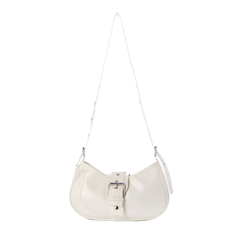 フロントの大きめのバックルがポイントのショルダーバッグ。