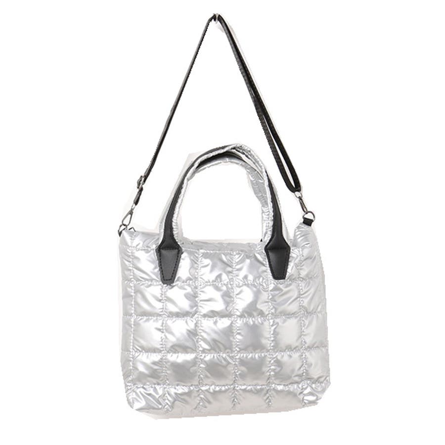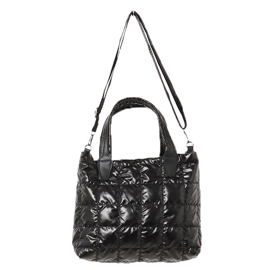 華やかな光沢感のある素材のキルティングショルダーバッグ。