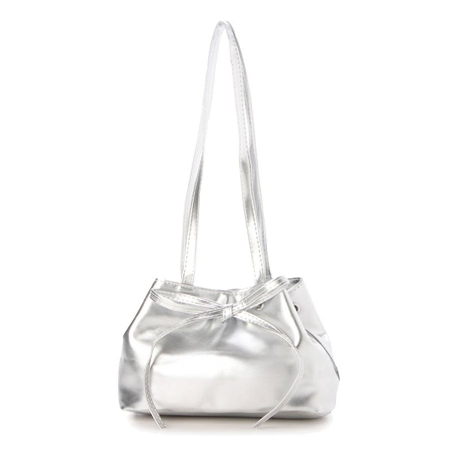 巾着のように絞って使いやすいミニショルダーバッグ。