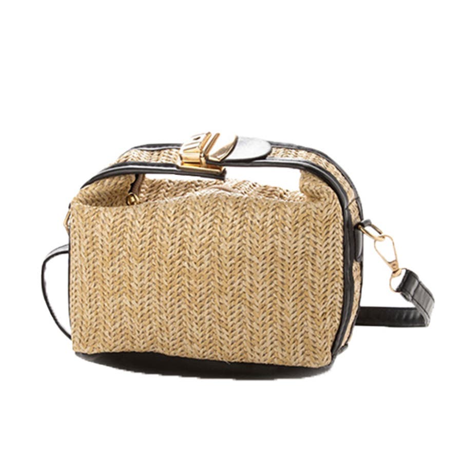 麦わら風素材×合皮使いがおしゃれなショルダーバッグ!