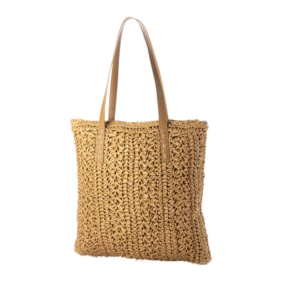 手編み風デザインがナチュラルな印象のストロートートバッグ。