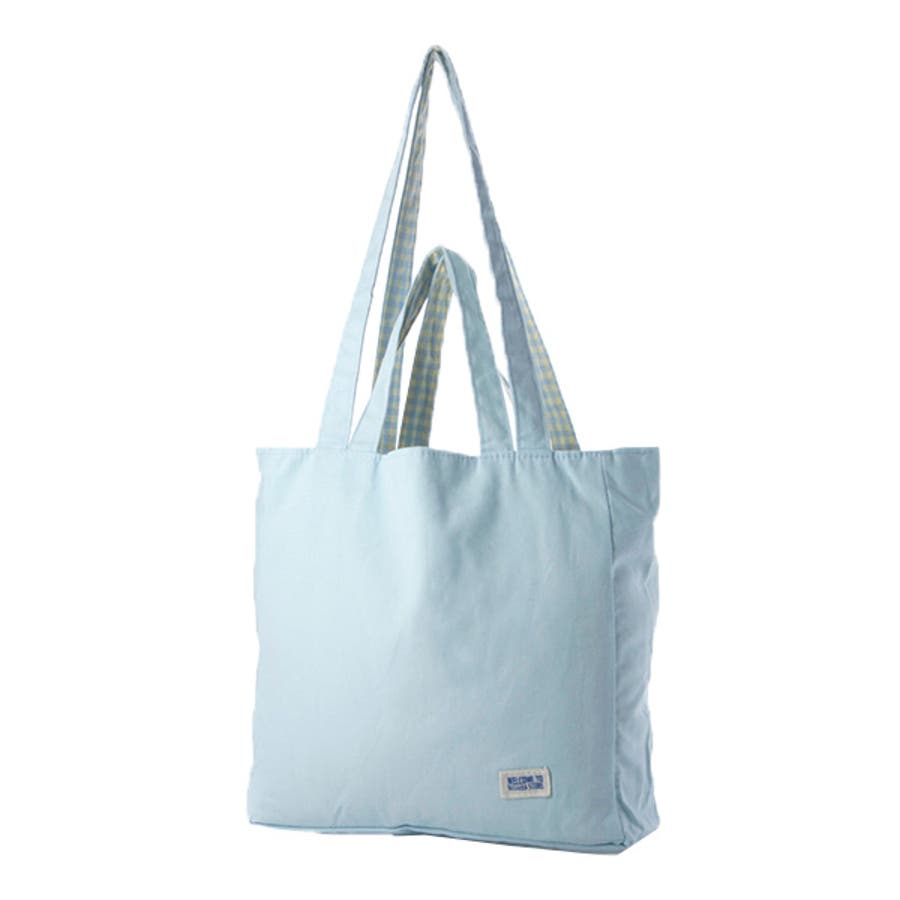無地×ギンガムのリバーシブルで使えるオシャレなキャンバスバッグ。