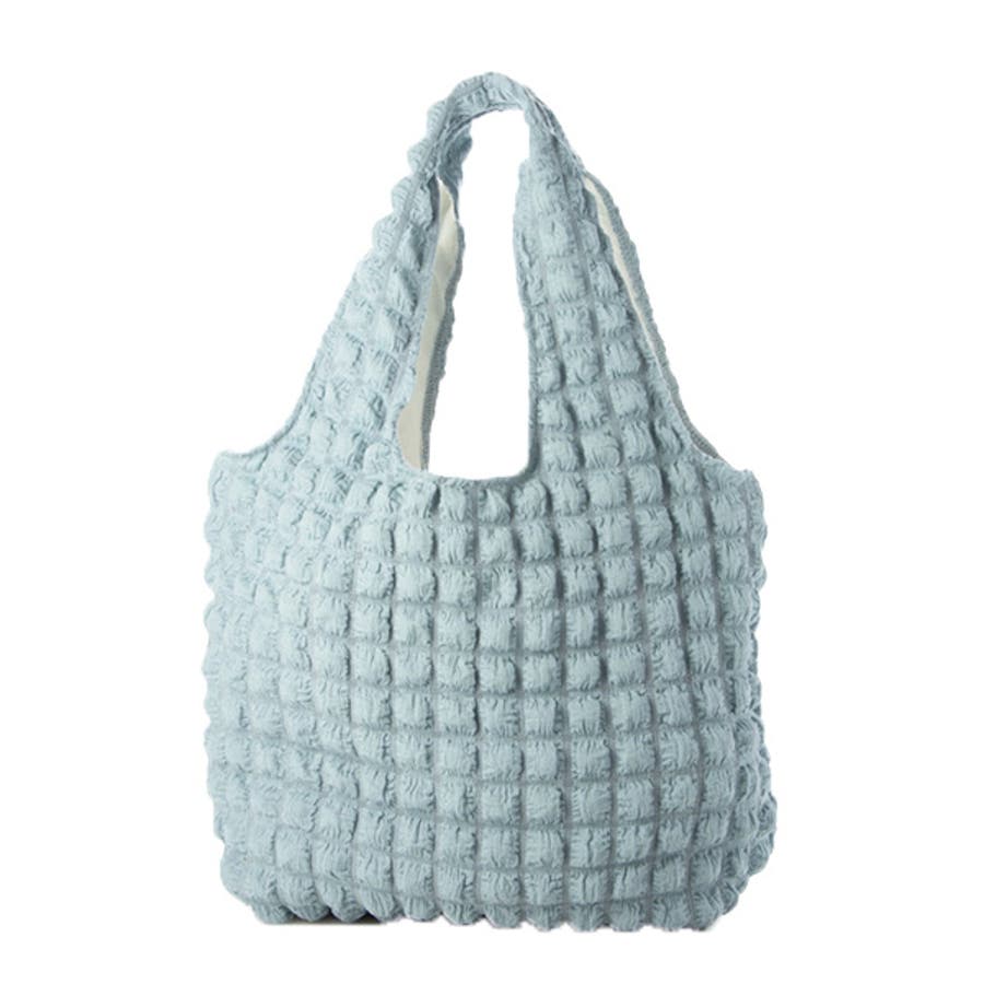 かわいいポップコーンのような生地のトートバッグ。