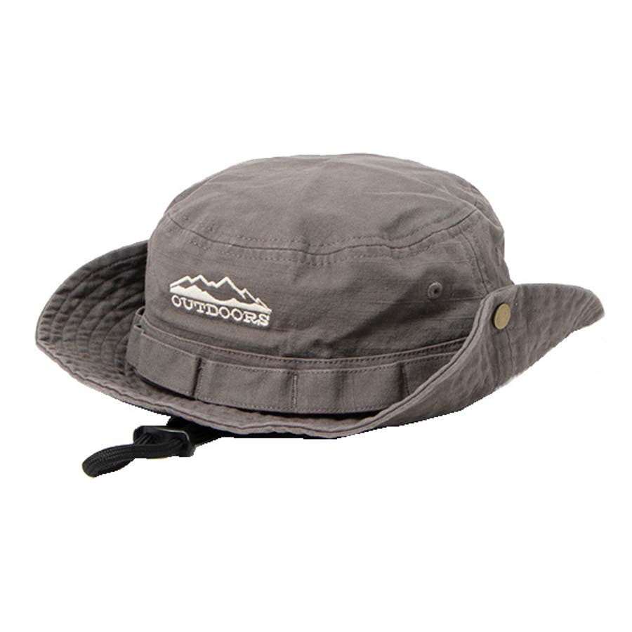 調節できるあごヒモつき刺繍入りサファリハット。