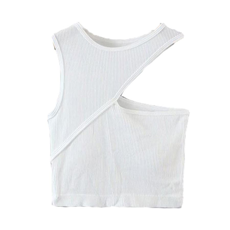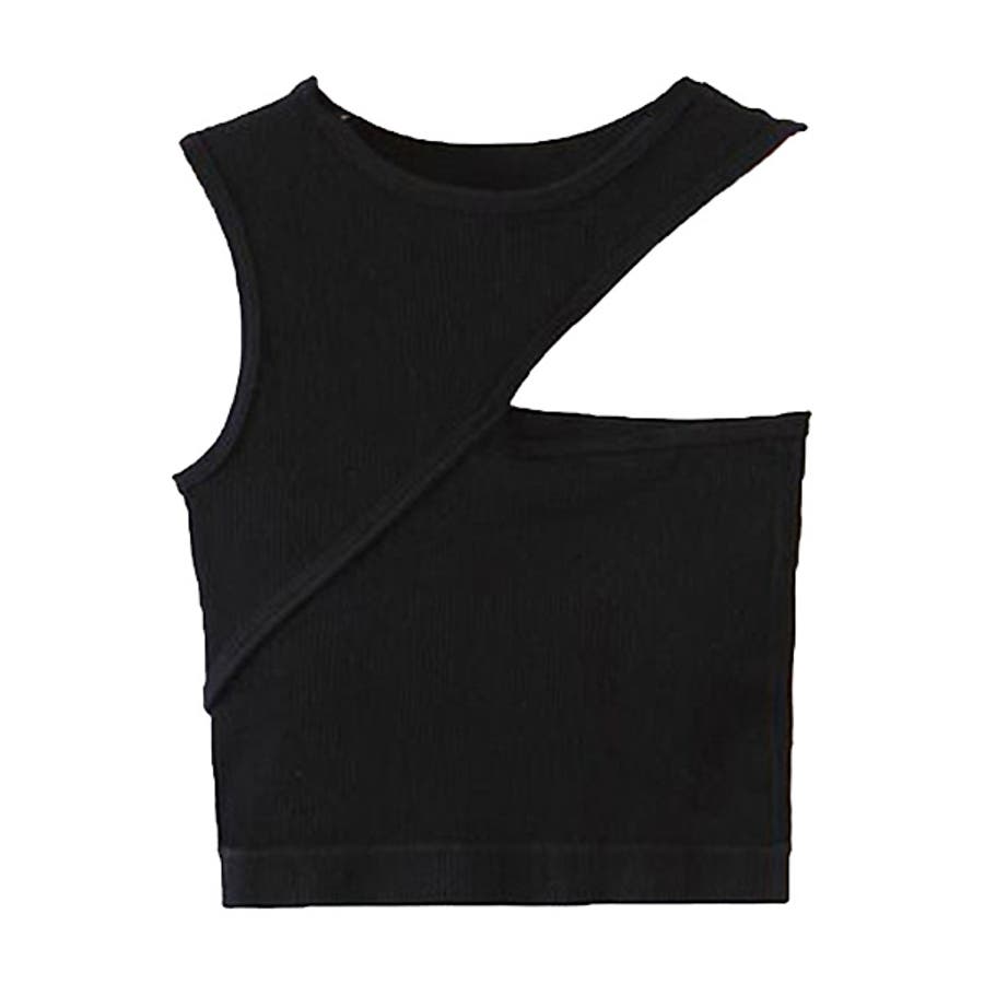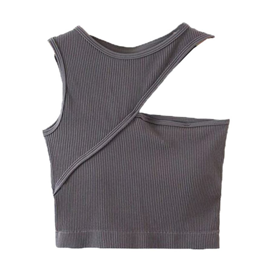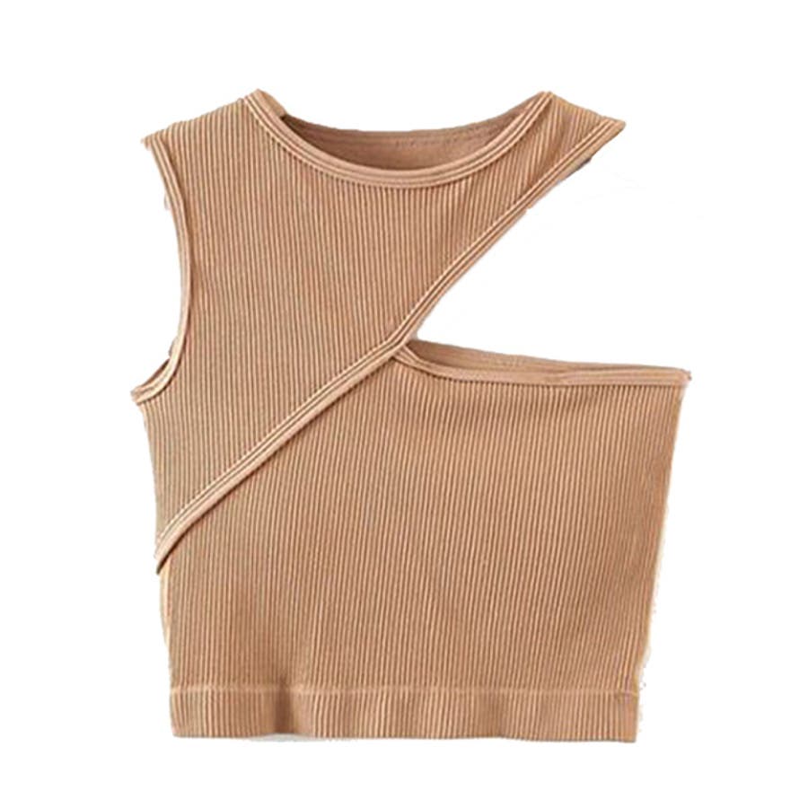 リブ素材のデザイン性の高いカップ付きブラトップ。