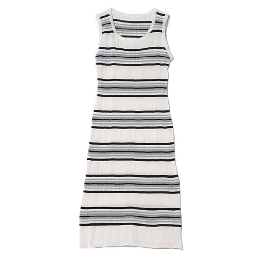 スリムなシルエットのボーダー柄ノースリーブワンピース。