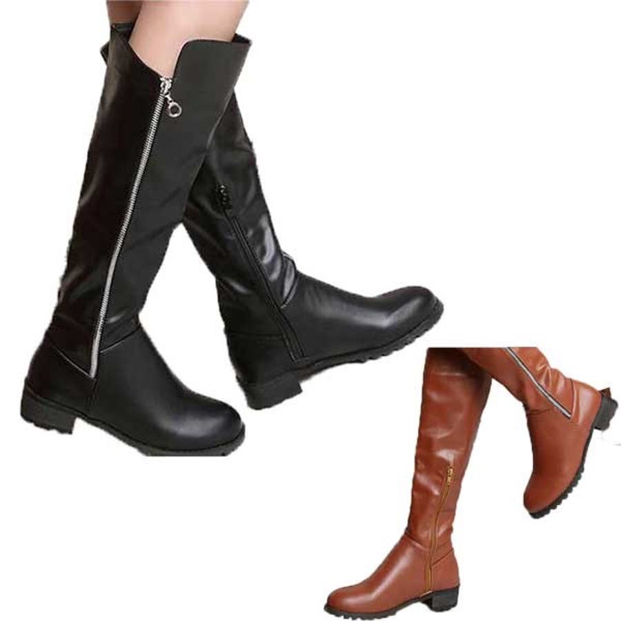 ブーツ ロング ジョッキブーツ ぺたんこ レディース くつレディース 秋冬