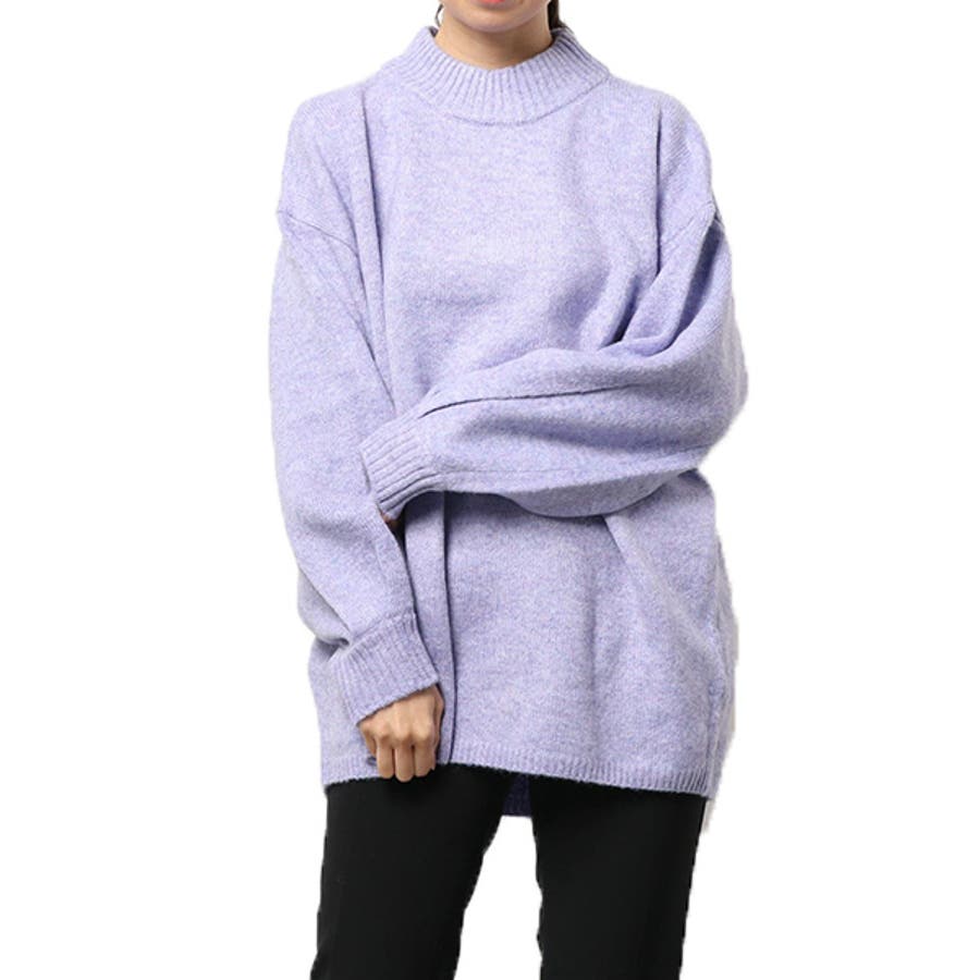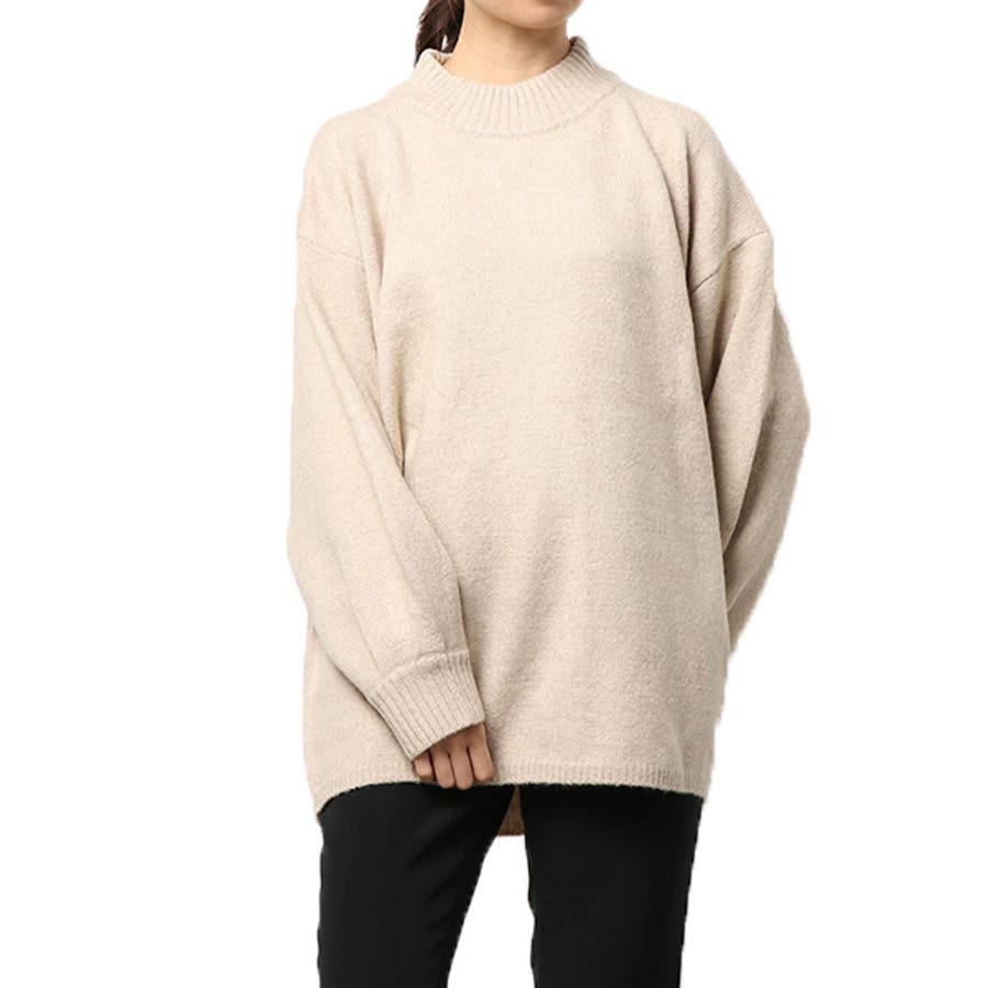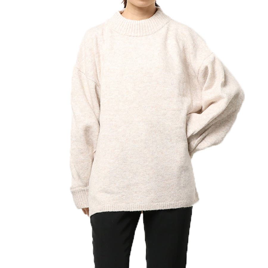 ハイネックデザインがおしゃれなニットプルオーバー。