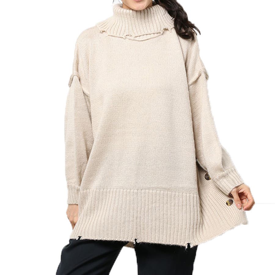 タートルネックデザインがおしゃれなニットプルオーバー。